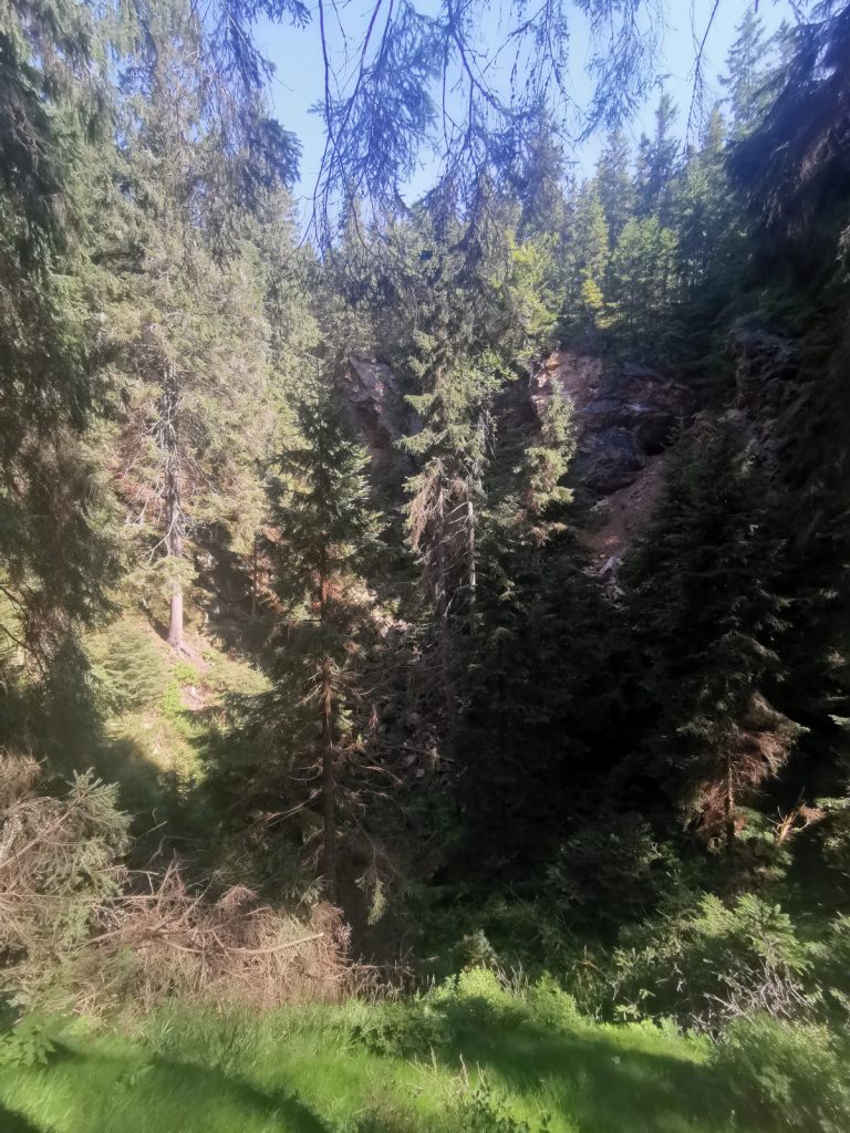 Hned po vstupu lze cítit příjemné ochlazení. Cesta je sice asfaltová a ne přírodní, což zážitek trochu zhoršuje. Ale na mnoha místech lze sejít ke korytu potoka a pokračovat alespoň kousek po jeho břehu. A nebo se ze silnice kochat pohled dolů. A díky asfaltu je tohle perfektní místo na případný výlet s kočárkem, zejména v horkém dni. Po cestě čekají na vandrovníka jak zajímavé skály kolem silnice, tak i dva vodopády. Na mapě je jen jeden, ale kus nad ním je další.