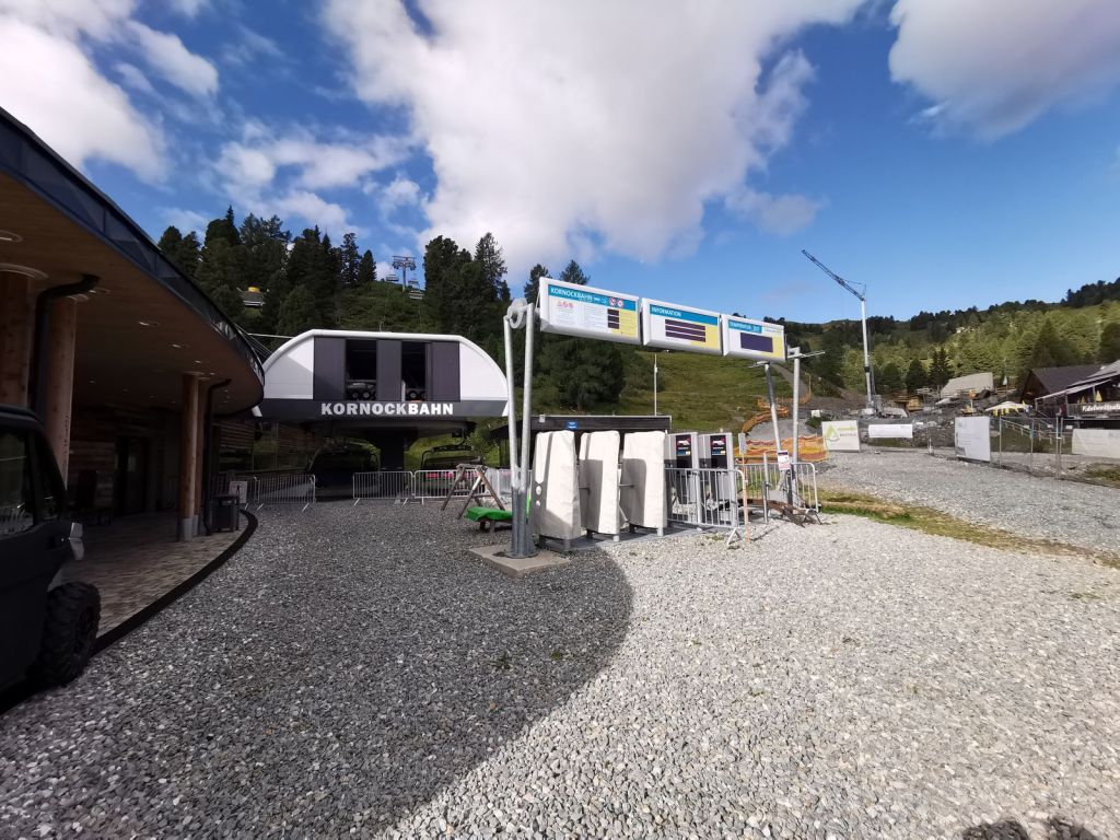 Lanovka ve Štýrsku, Kornockbahn, nabízí delší svezení, dopravuje rovnou do výšky 2200 metrů na dráze dlouhé cca 1400 metrů- a kupodivu je tato lanovka levnější, €14. Další slevy lze pak získat s kartou hosta – tu lze získat i při ubytování v kempech.