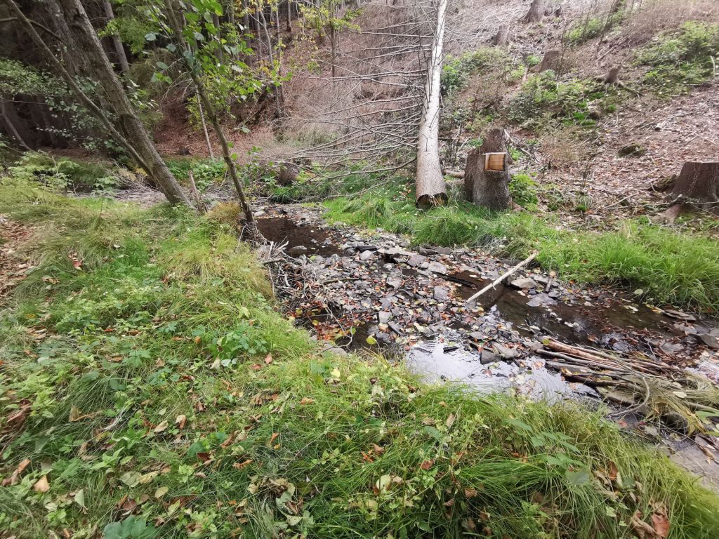 Nicméně my se vraceli po druhé straně kopce Špláz k autu. Lze zde narazit na vhodné místo k zaparkování obytného vozu, které může být druhým výchozím bodem při poznávání zdejšího místa.