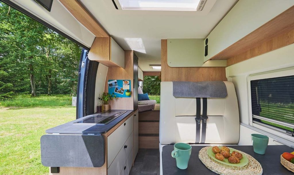 Interiér je trochu jiný, než se kterým se lze setkat u obytných vozů ovlivněných německým trhem. U krátké verze vestavby zamrzí otevírání plynových skříněk do prostoru pro přepravu nákladu a nebo úzký přístup do prostoru nad kabinou. Nelíbí se mi ani dlouhé šuplíky v kuchyňské lince, pro pohyb kolem vaření je to spíše na obtíž. Nicméně provedení vypadá solidní a na vstupní modely kvalitní. Jak na polointegrály, tak na vestavby se lze podívat na těchto videích: