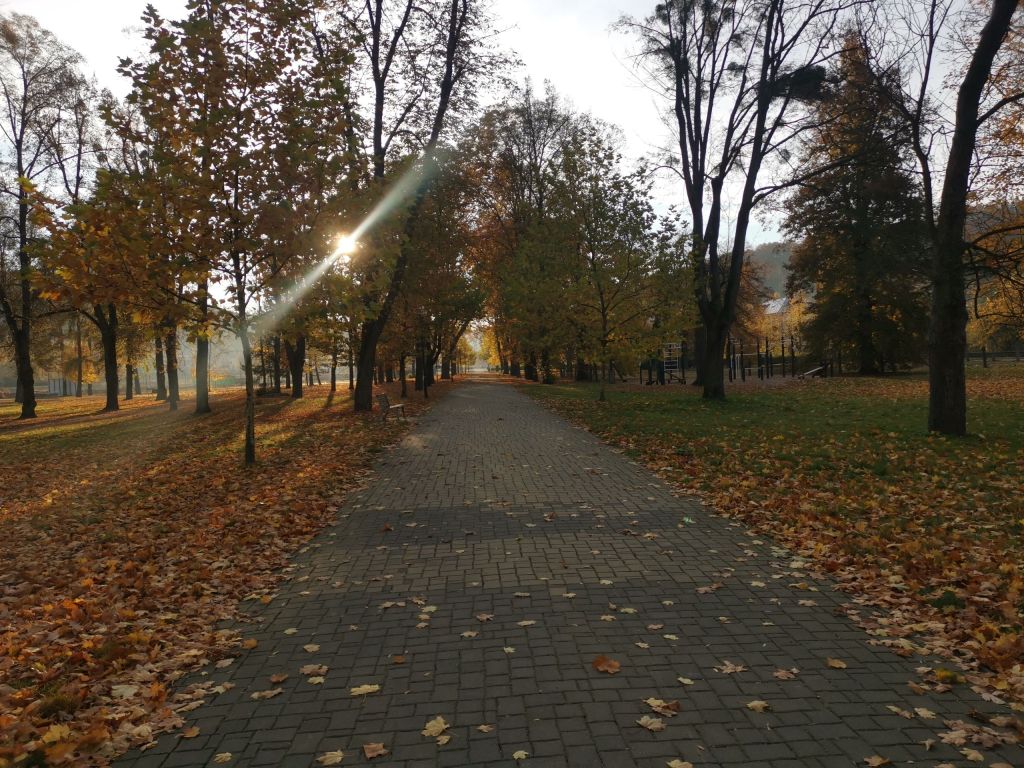 Místní kolonáda byla koncem října poklidná, ale nikoliv prázdná. Pěkné počasí vylákalo dostatek lidí. Škoda jen hluku z dopravních tepen na druhé straně řeky – vede tudy jak poměrně frekventovaná silnice, tak i železnice.