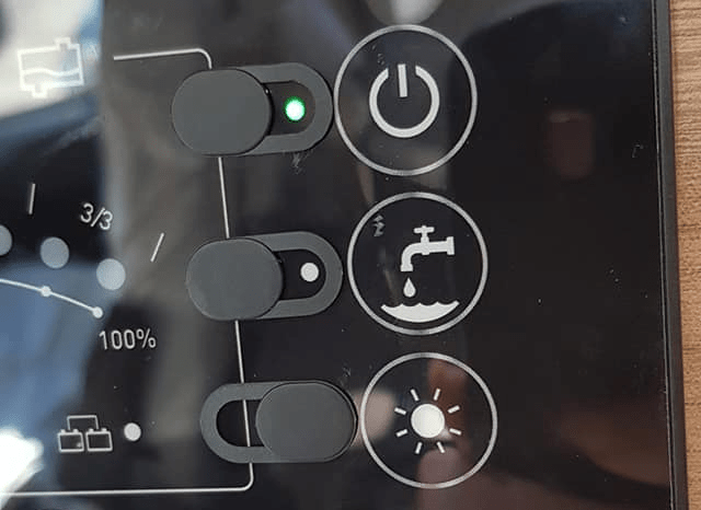 Tip: krytky je potřeba lepit za tepla, teplota předmětů by měla být ideálně nad 10 stupňů, místo by mělo být čisté a odmaštěné. Lepidlo krytek není příliš silné, krytku lze v případě potřeby snadno odstranit. Na plné zakrytí třeba ukazatele teploty u výše zmíněné lednice Dometic je nutné použít minimálně dvě upravené záslepky. Záslepky také neřeší větší displeje a jiné světelné zdroje.