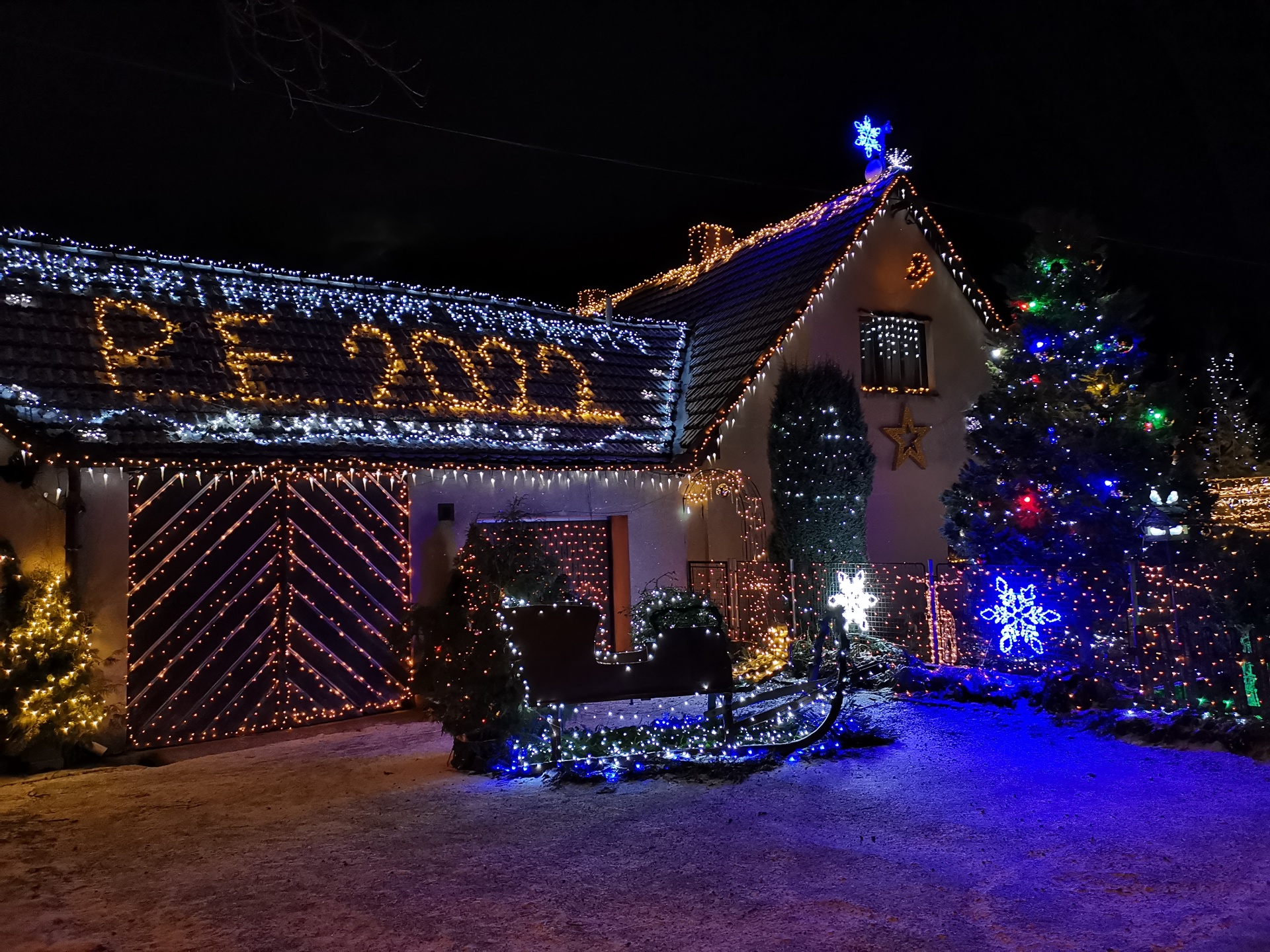 - O kus dále je i osvětlený dům v obci Libišany, manželů Houškových,
