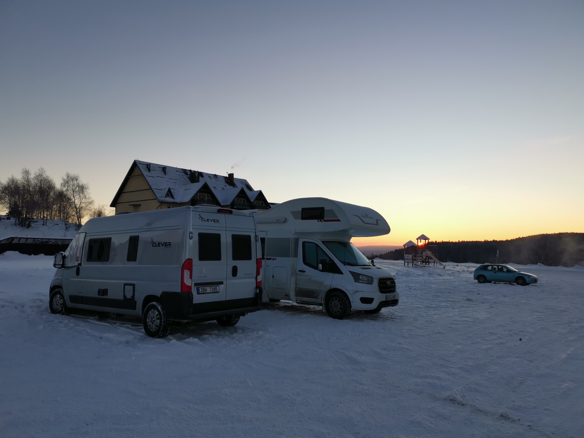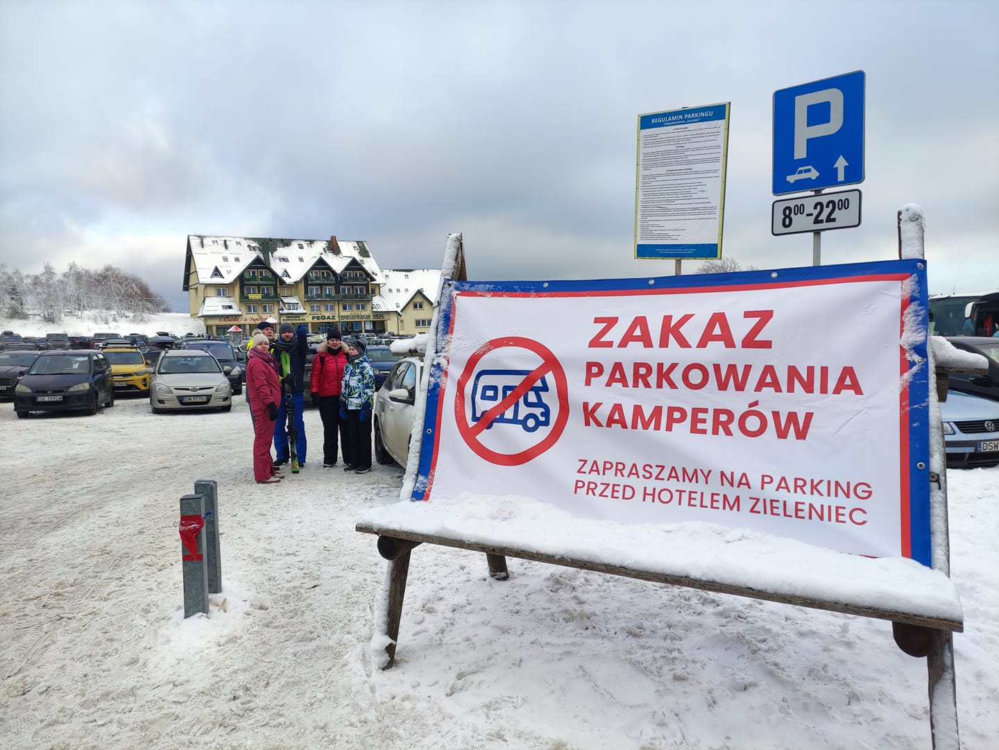 Aktualizace 17.1. 2022: na hlavním parkovišti už obytné vozy nesmí stát, nově je pro ně vyhrazeno místo ve spodní části areálu, viz přiložené obrázky. Nové místo je zhoršením, spodní část areálu je se zbytkem poměrně špatně propojena. Je možné, že se jedná jen o dočasné opatření, popřípadě že tato regulace platí jen ve dny zvýšeného zájmu či polských prázdnin. Nicméně je dobré s touto eventualitou počítat a nebýt tak na místě překvapen.