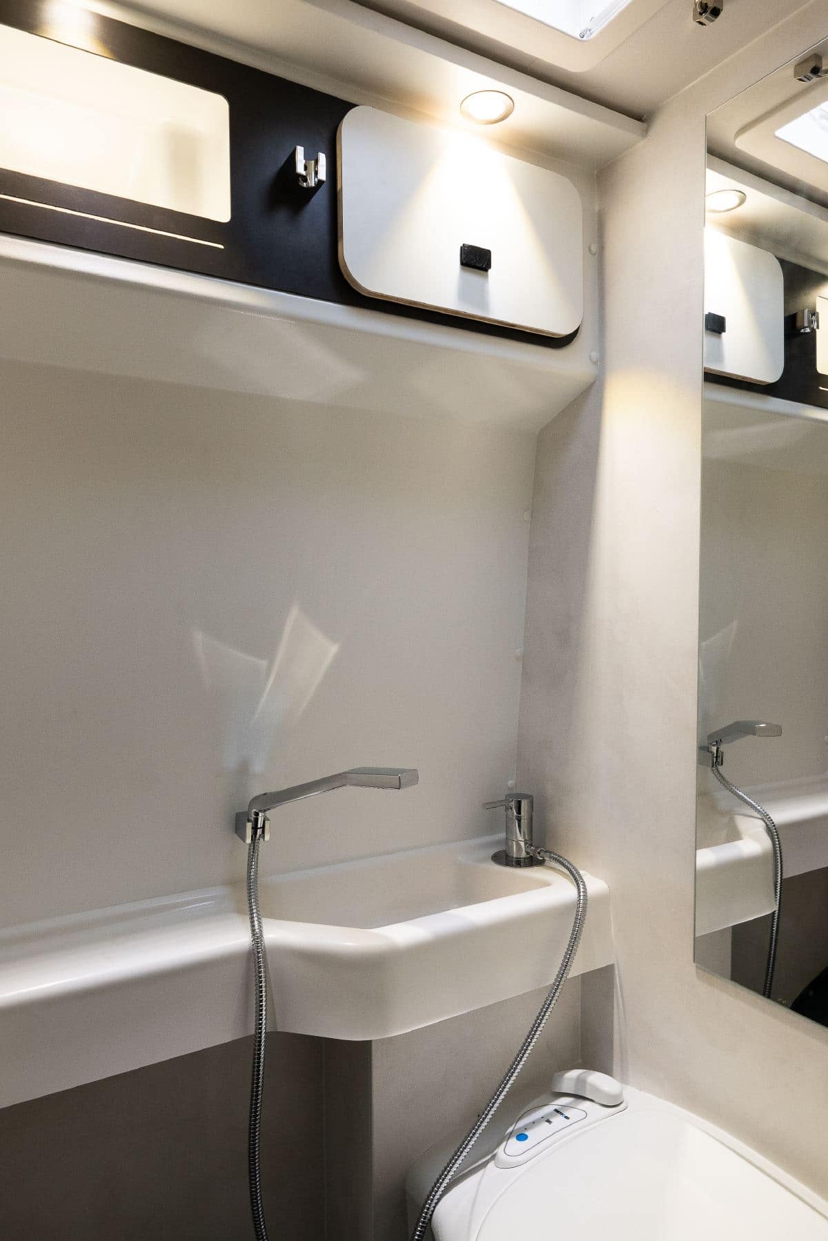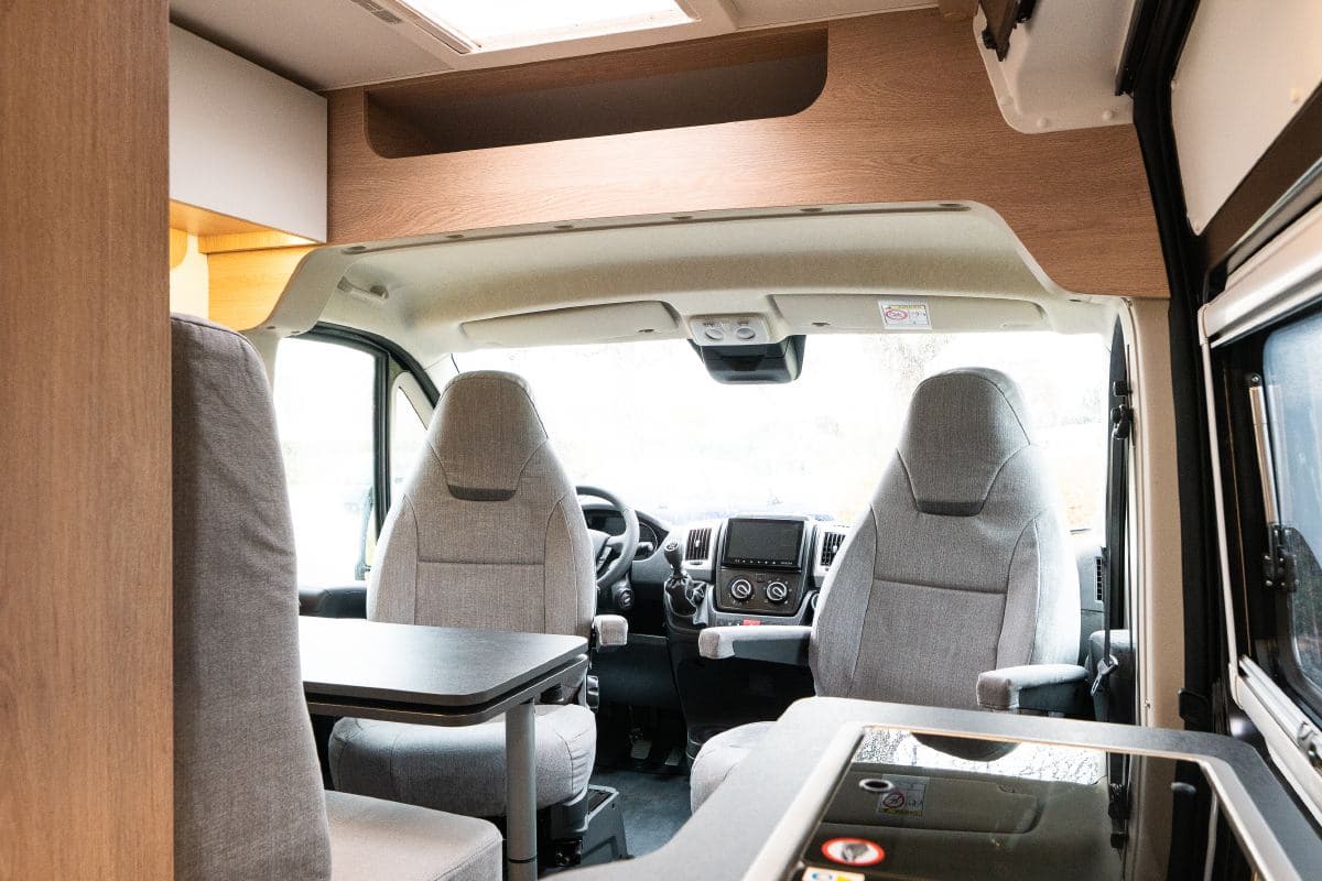 Vybavení bude zhruba shodné s většími bratříčky: klimatizace , tempomat, kombinované topidlo Truma Combi4 pro topení a ohřev vody. O interiéru si jde udělat obrázek z přiložených fotografii – podle mého působí velmi elegantně a vzdušně. Barvy čalounění i dekor nábytku ladí a působí hodnotným a odolným dojmem, zdá se, že i zadní dvoj-lavice umožní pohodlné cestování. Přední sedadla řidiče a spolujezdce jsou, jak jinak, otočná.