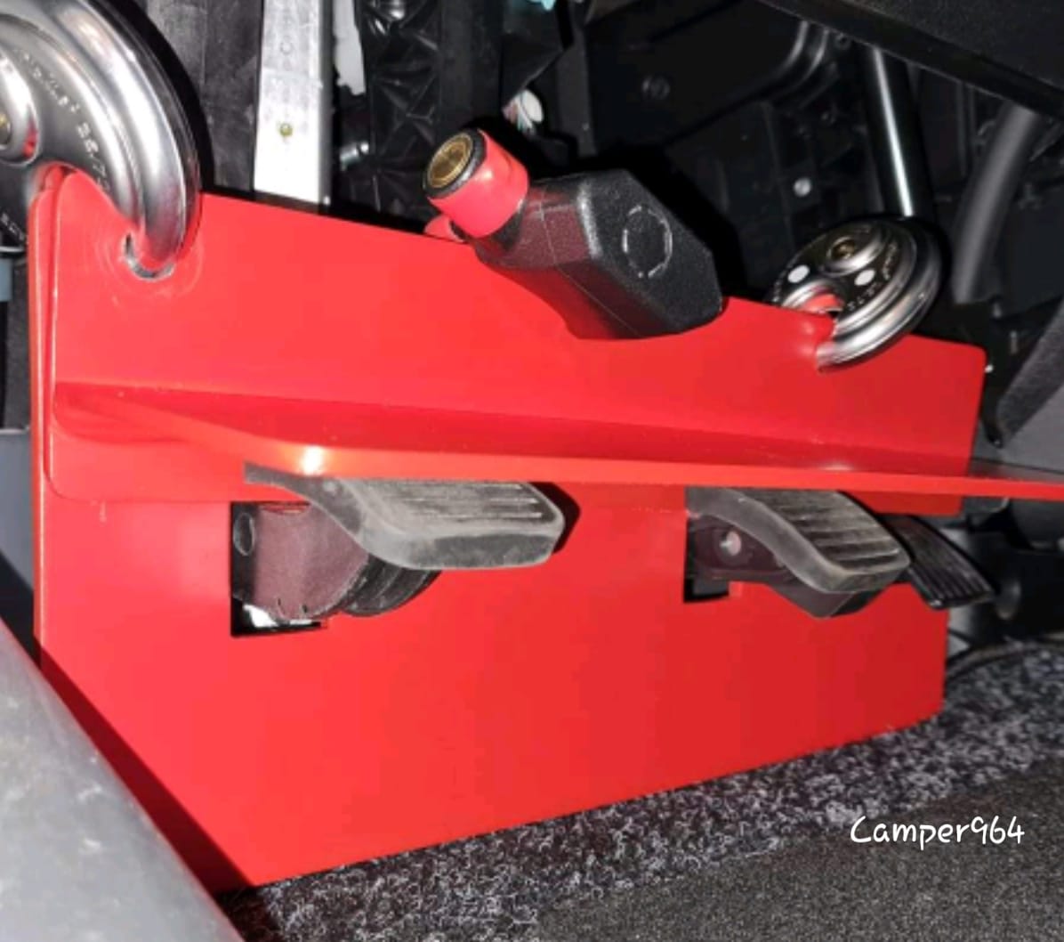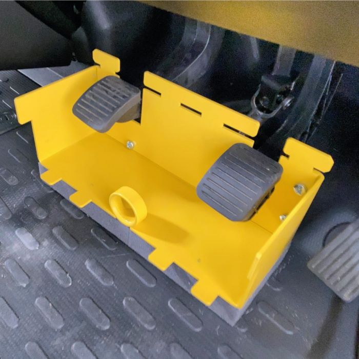 Toto zabezpečení si lidé vyrábí většinou sami. S trochou manuální zručnosti si tedy může každý něco podobného udělat sám, poté se připevní k pedálům, zajistí se zámky a zabrání použití vozu. U zde zobrazeného modelu jsou použity tři zámky, z toho jeden s alarmem – takže je možné, stejně jako v případě zámku u sedadla, připravit zloději perné chvilky.
