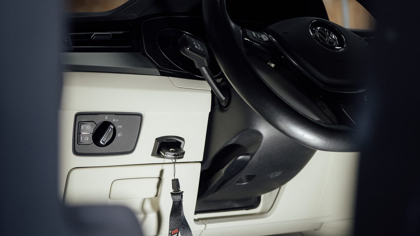 Zámek zpátečky je známý z osobních automobilů, jde jej však nechat zamontovat i do obytných vozů. Pro Fiat Ducato a další odvozené modely je k dispozici zámek od firmy Construct. Výhodou je, že z palubní desky nic moc nevyčnívá a zámek esteticky nijak neruší. Používání je jednoduché, před opuštěním vozidla je nutné zařadit zpátečku a zámek zapnout. A při startování zase odemknout. Výrobce dodává i jednouchý malý navíječek na klíč, takže pokud nastartujete se sešláplou spojkou a teprve pak si uvědomíte, že jste zapomněli odemknout, není to až takový problém.