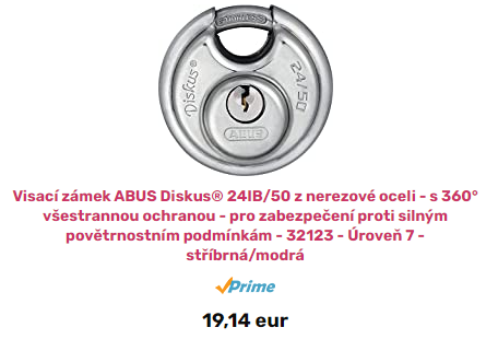 Zámek ABUS Granit Quick 37/60 stojí kolem 2.700 Kč, má třídu bezpečnosti 15/20. jde pořídit i vyšší řady zámků s dálkovým ovládáním a alarmem, cena od cca 3.500 do 6.000 Kč. V každém případě je ale nutné otvor v základně sedadla rozšířit, jeho průměr je ve výchozím stavu nedostatečný.