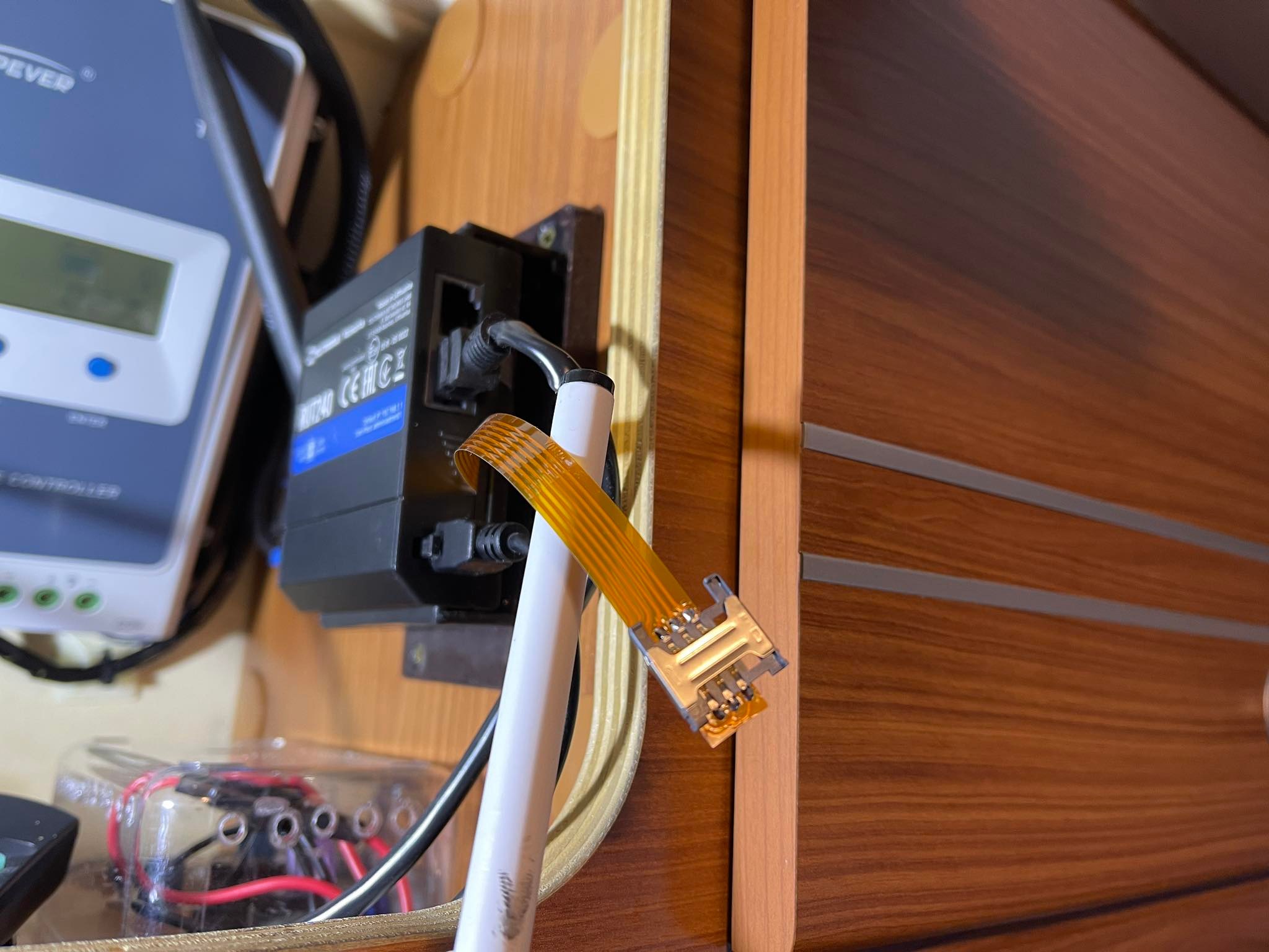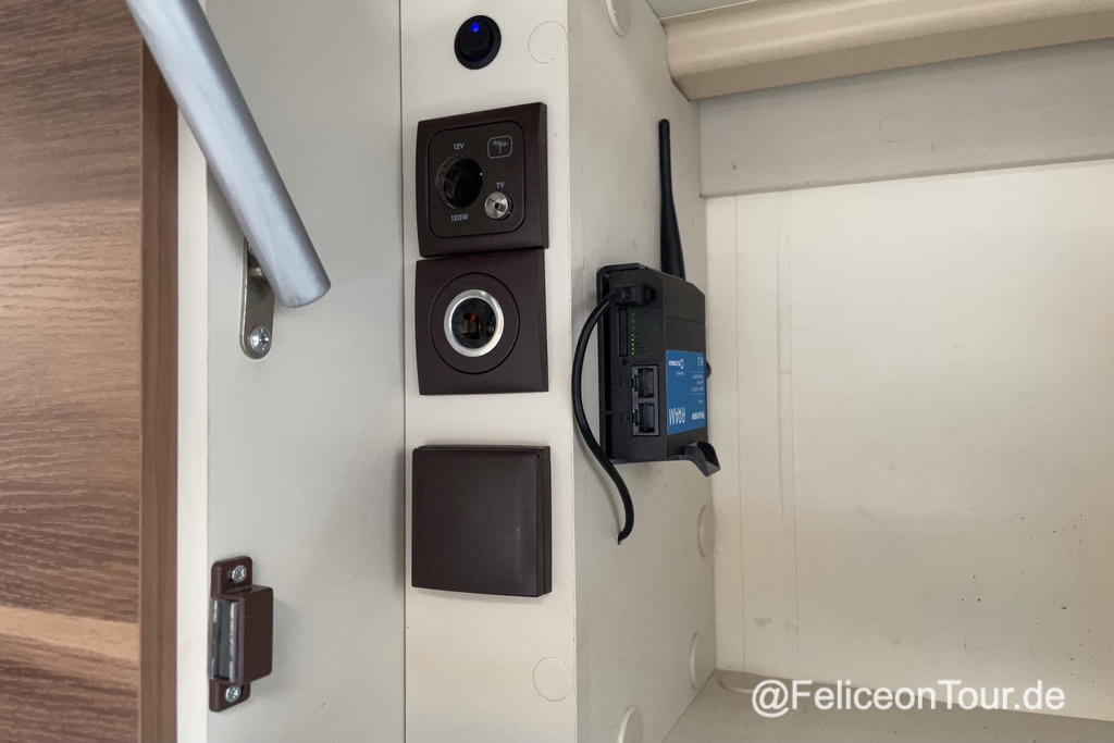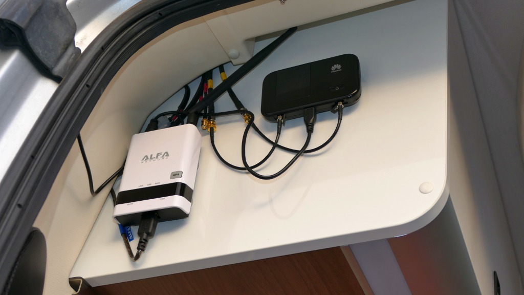 Podobně jako Felice On Tours i oni se vzdali myšlenky na to vystačit jen s veřejnými Wi-Fi sítěmi. Zvolili kombinaci antény od Panorama, model LP a k tomu modem Huawei – podobný typ jako v zde v článku popisovaný Huawei E5577C. Anténu namontovali přes prostup střechou. Na obrázku je možné vidět i jejich Wi-Fi extender Alfa R36 – i ten je popsaný v článku na jejich blogu.