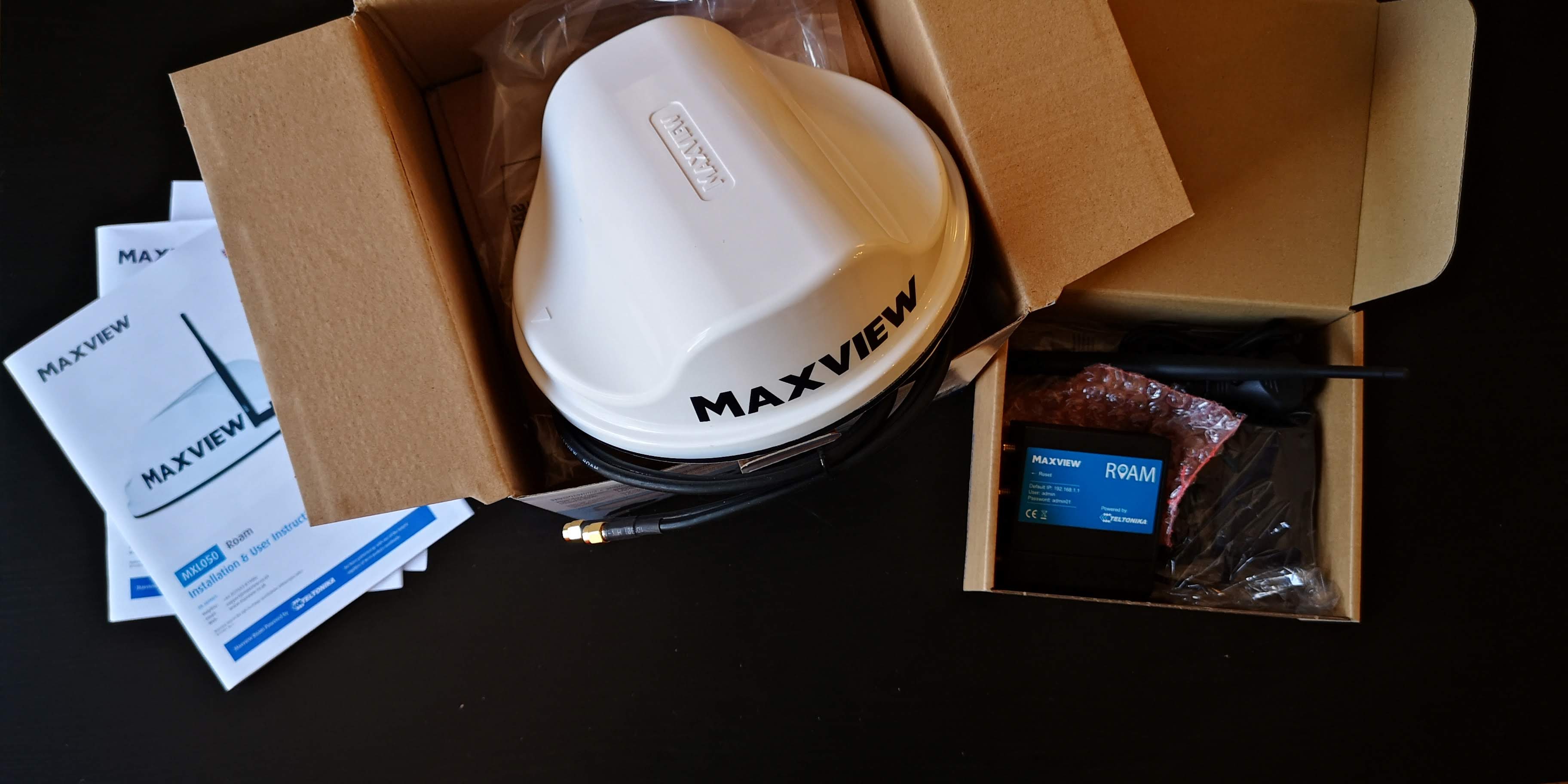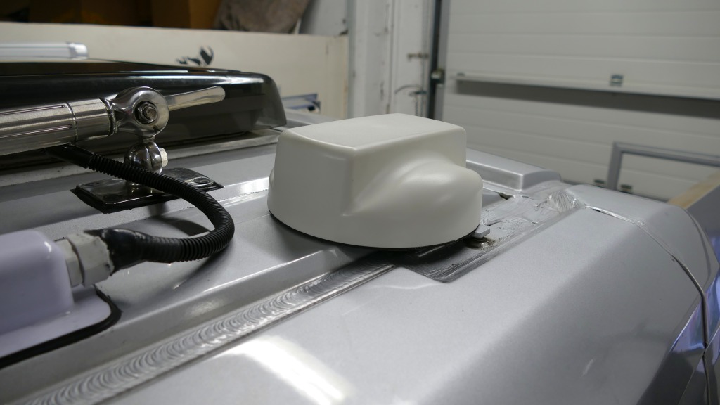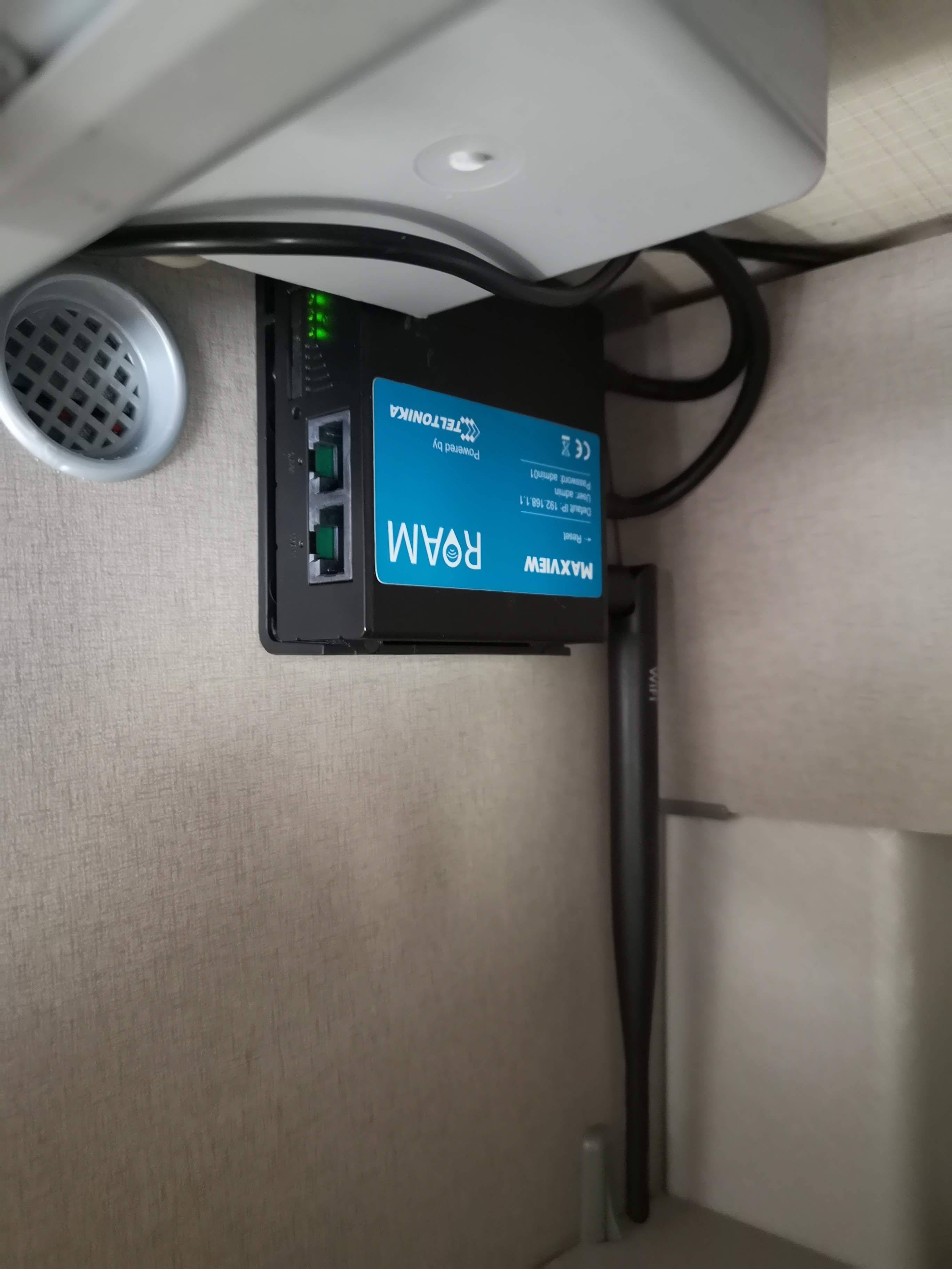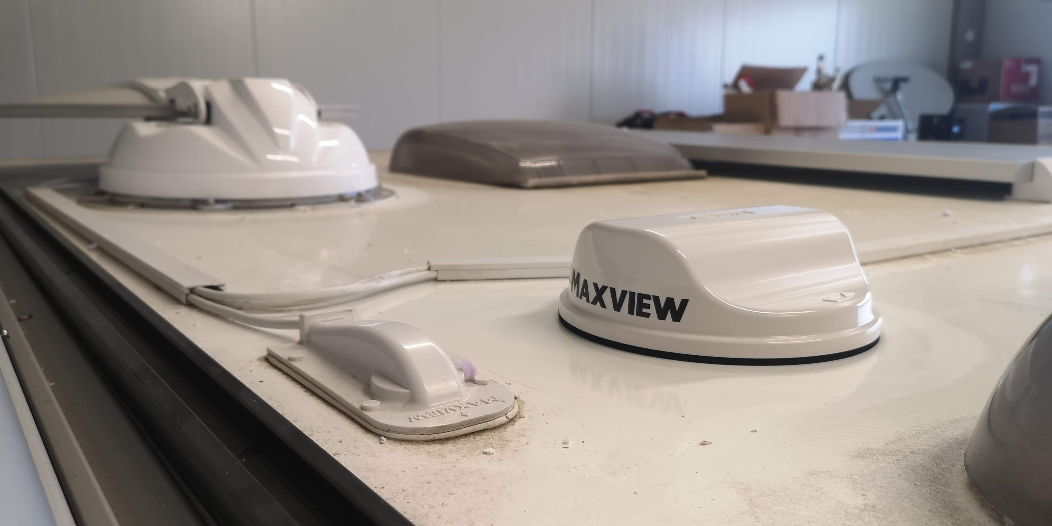 Bylo potřeba vyřešit připojení k internetu. Spoléhání se na veřené WI-Fi sítě bylo lehkovážné, připojení bylo pomalé, omezené, často s podivnou konfigurací. Vyhlédli si Maxview a provedli montáž antény na střechu pomocí držáku (sada víz výše)