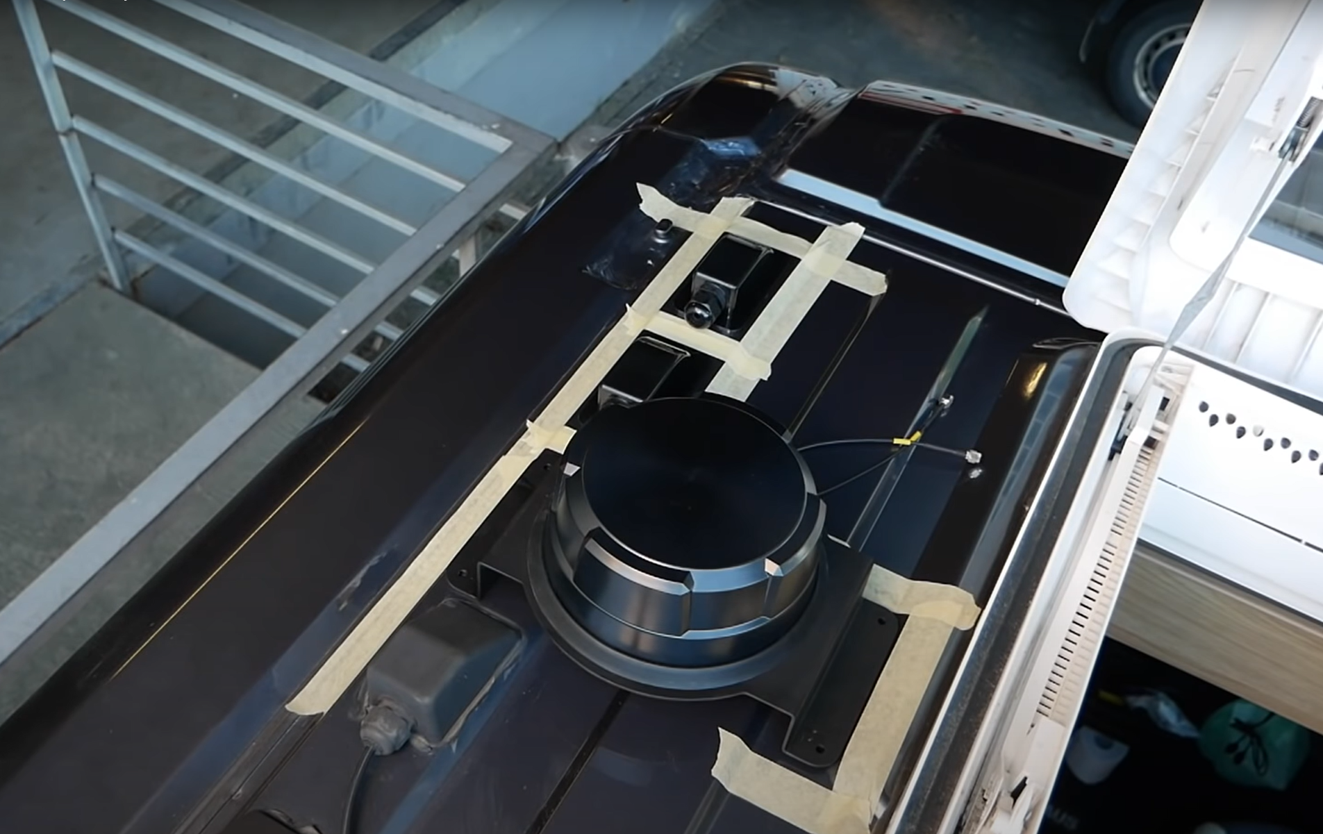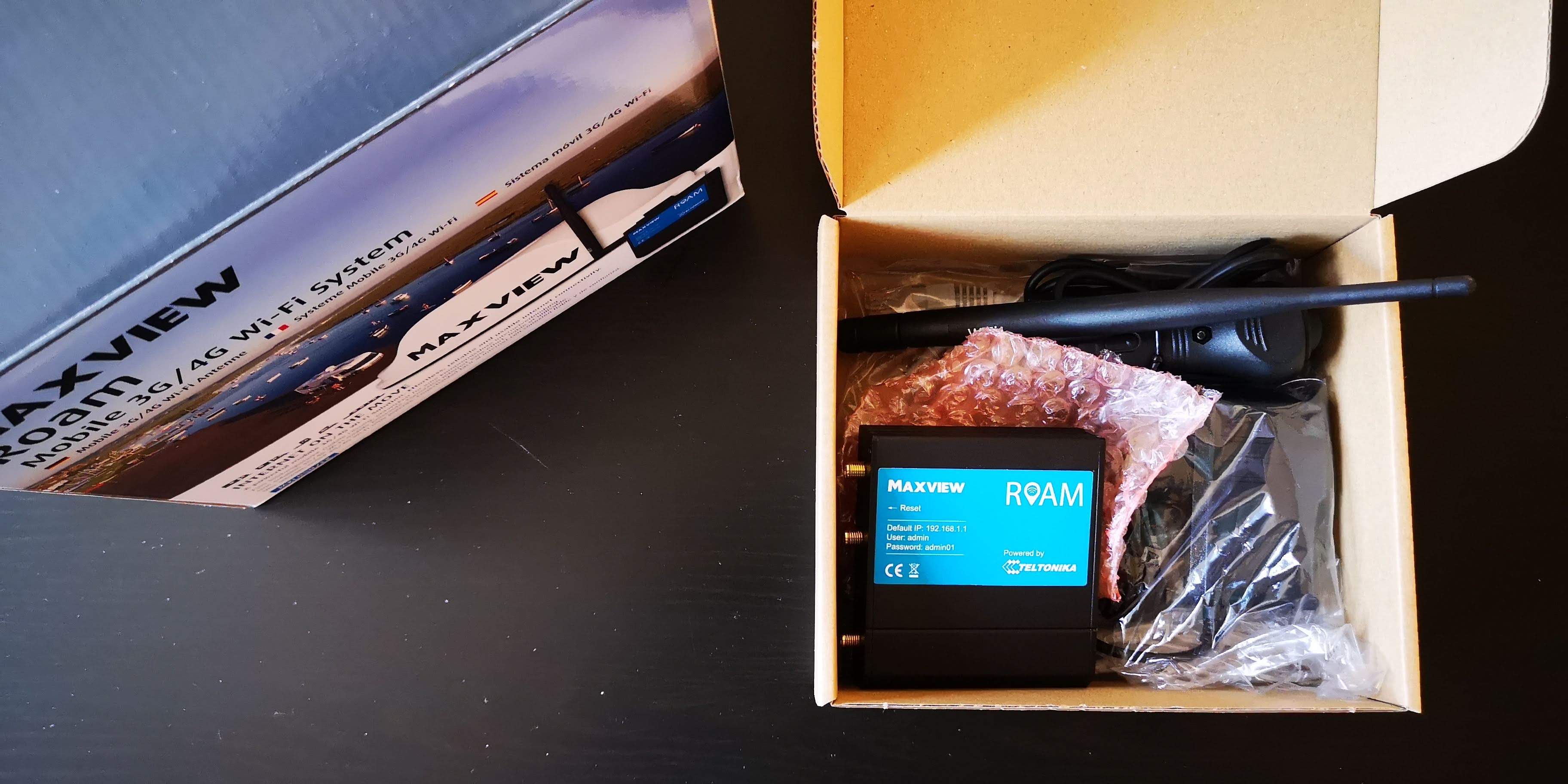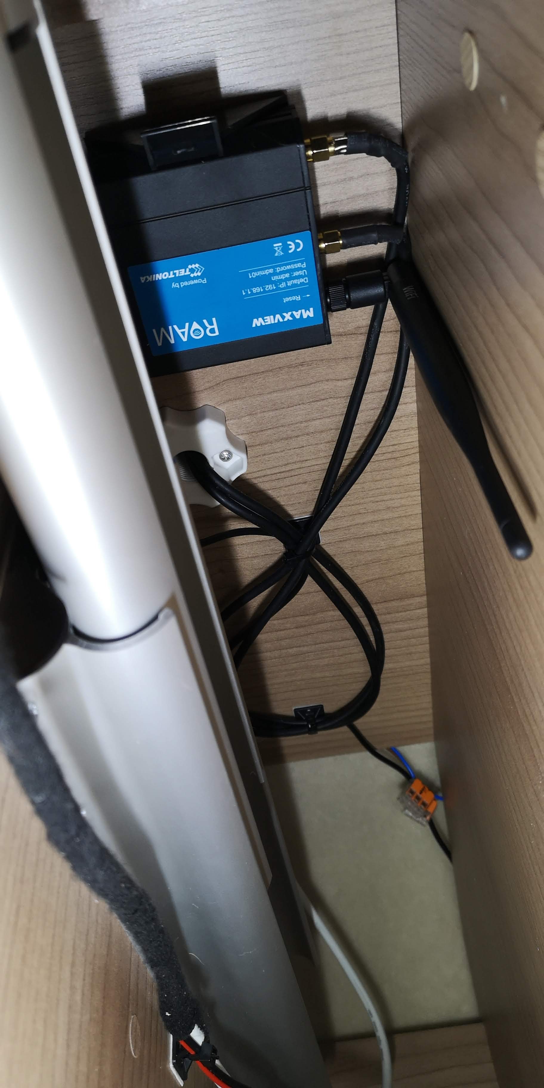 Bylo potřeba vyřešit připojení k internetu. Spoléhání se na veřené WI-Fi sítě bylo lehkovážné, připojení bylo pomalé, omezené, často s podivnou konfigurací. Vyhlédli si Maxview a provedli montáž antény na střechu pomocí držáku (sada víz výše)
