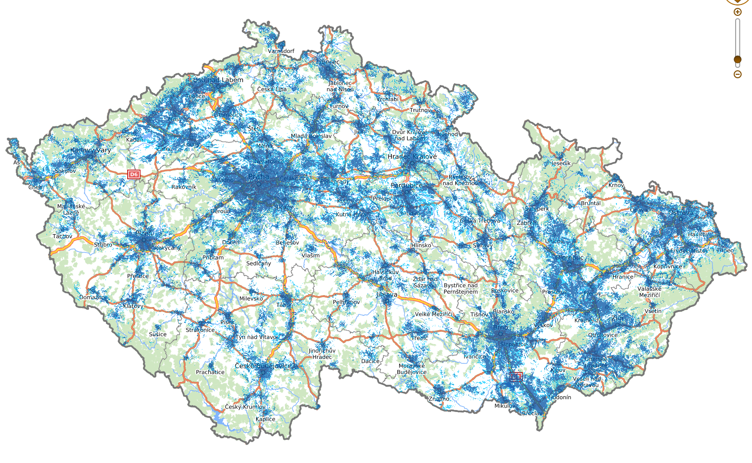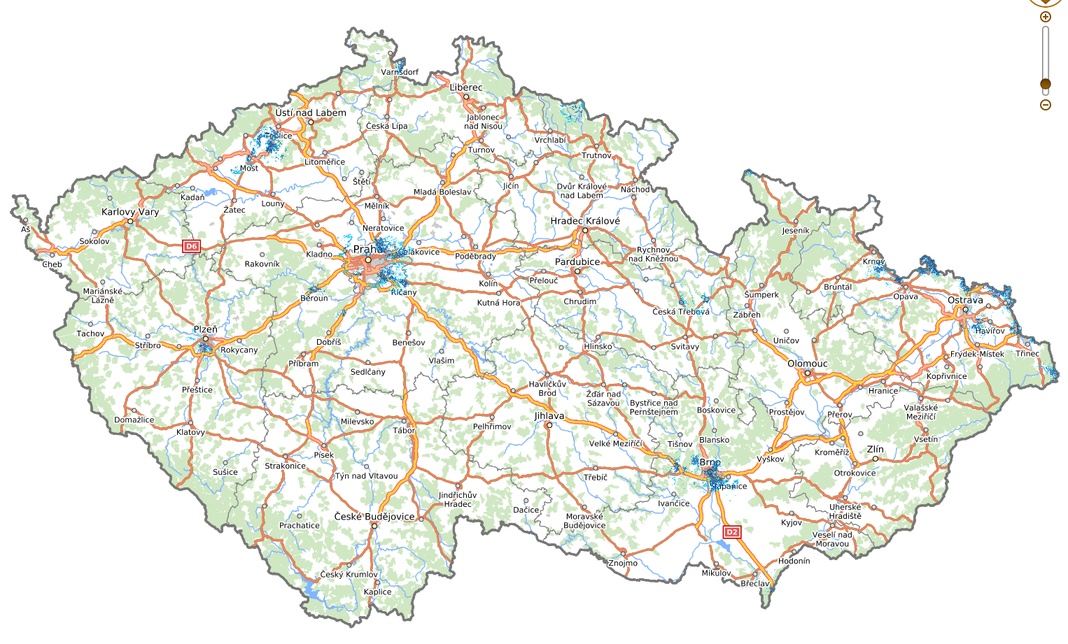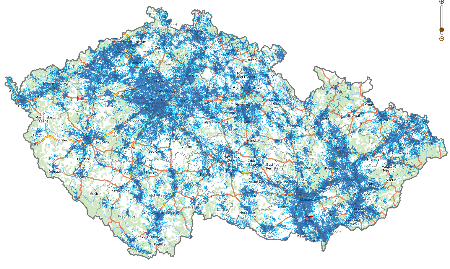 - Horší rychlosti mimo hustě zalidněné oblasti