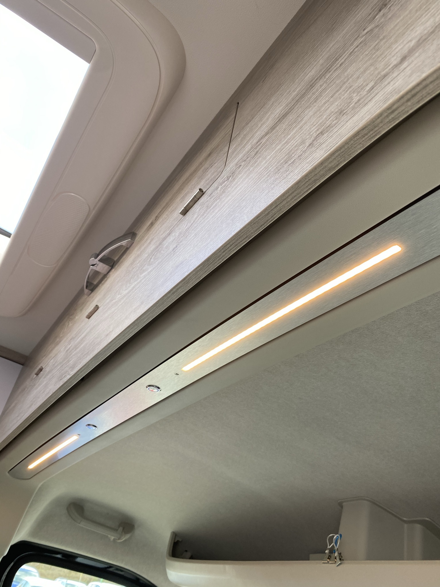 Od uživatele Mischu: toto osvětlení kabiny PCS ve tvaru pásu do prohlubně v horním obložení kabiny si můžete zakoupit na internetu. Je to pěkné, ale cena je poměrně vysoká. Potřeboval jsem něco levnějšího. Využil jsem kus překližky ze svých zásob. Koupil jsem také hliníkový profil, LED pásek a dvoucestný vypínač. Překližková lišta byla natřena stříbrnou barvou ve spreji a spínač byl instalován do B-sloupku.