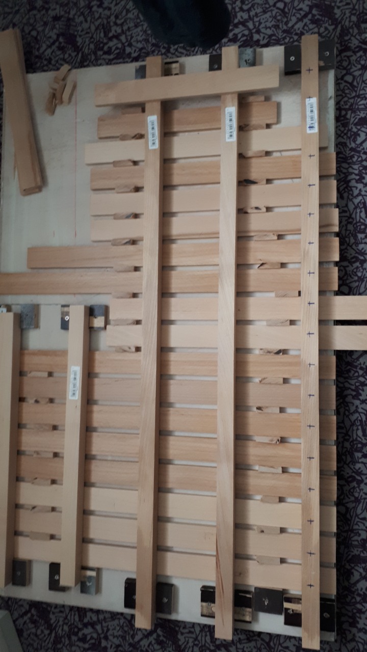Podstatná část konstrukce je z 12 mm topolové překližky (byly potřeba dvě desky 1200 x 600 mm), boční lišty jsou z vrstvené lišty z borovicového dřeva 1085 x 27 x 20 mm