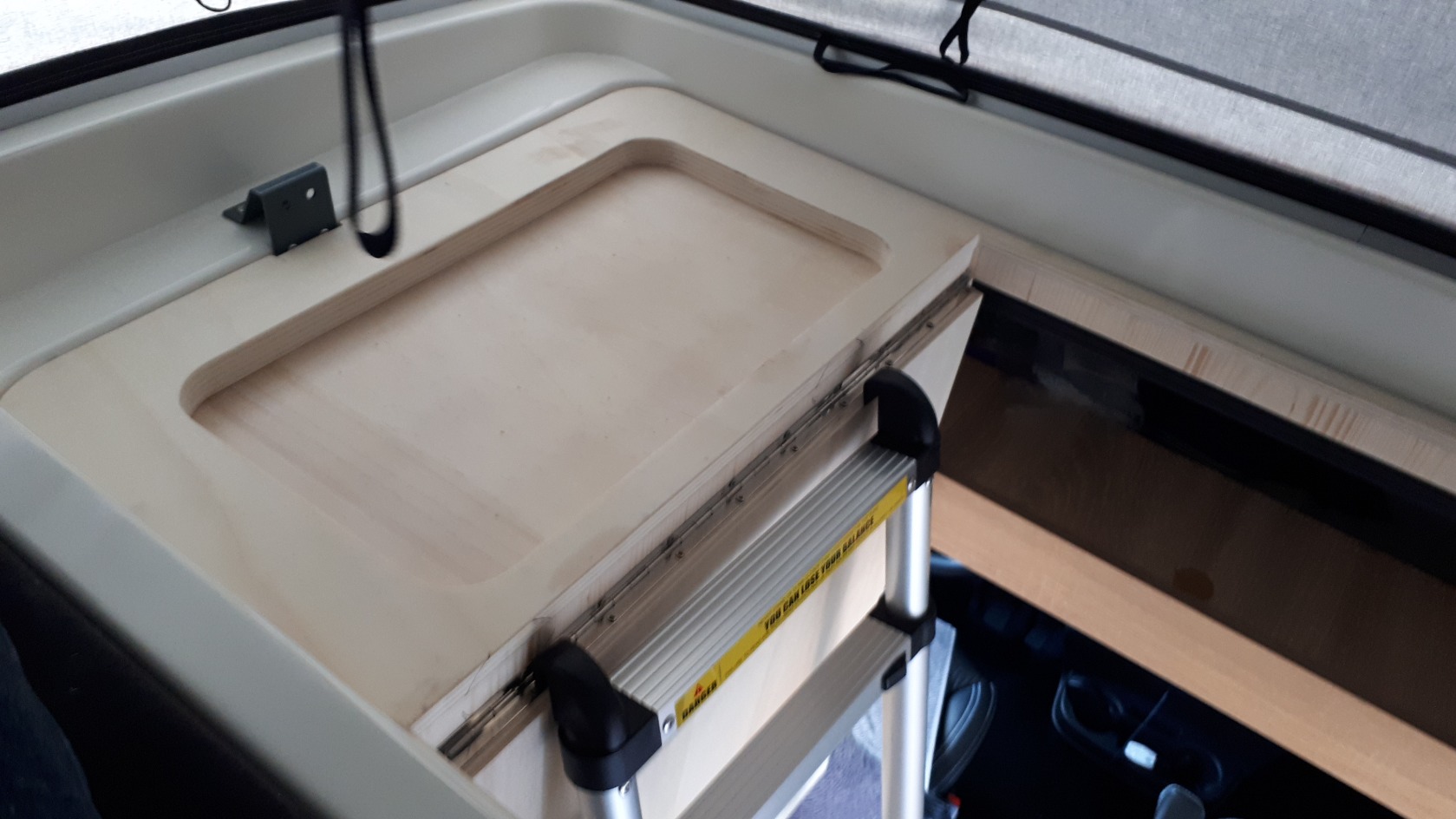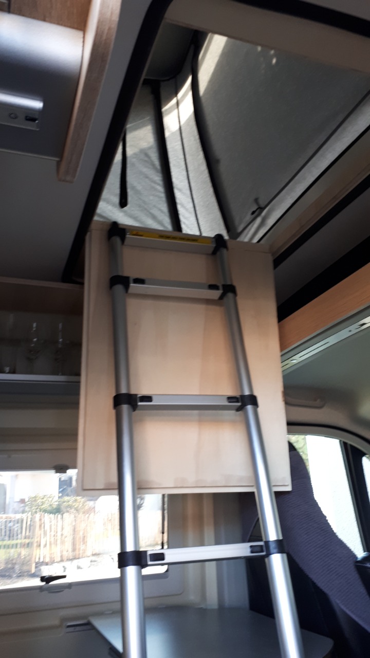 Od uživatele Schuetzbach: výlezy na půdu v sobě skrývají žebřík – zespodu otevřete dvířka a ty vyklopením i vysunou žebřík, který stačí rozložit a může se lézt nahoru. Tímto principem se inspiroval diskutující Schuetzbach, který si zhotovil jednoduchou vložku do stávajícího otvoru propojujícího vozidlo se střešním stanem. Pevně je zde přichycen i rozkládací žebřík. Místo je tak elegantně zakryto a žebřík je po otevření ihned k dispozici.