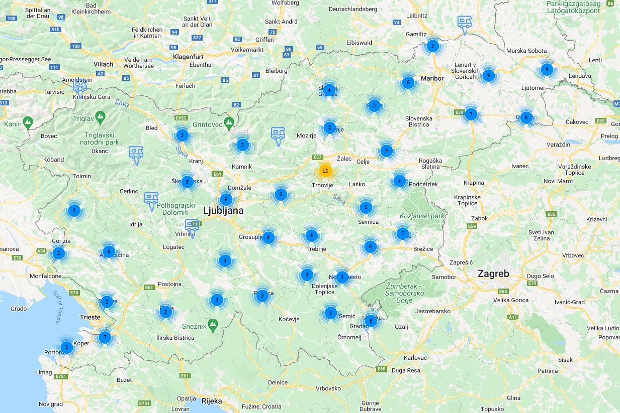 Kempy jsou rozesety po celé zemi. Úplný a aktuální seznam s cenami, vybavením, recenzemi a pokyny, s možností vyhledávání, je k prohlédnutí na slovinských stránkách Avtokampi https://www.avtokampi.si/en.