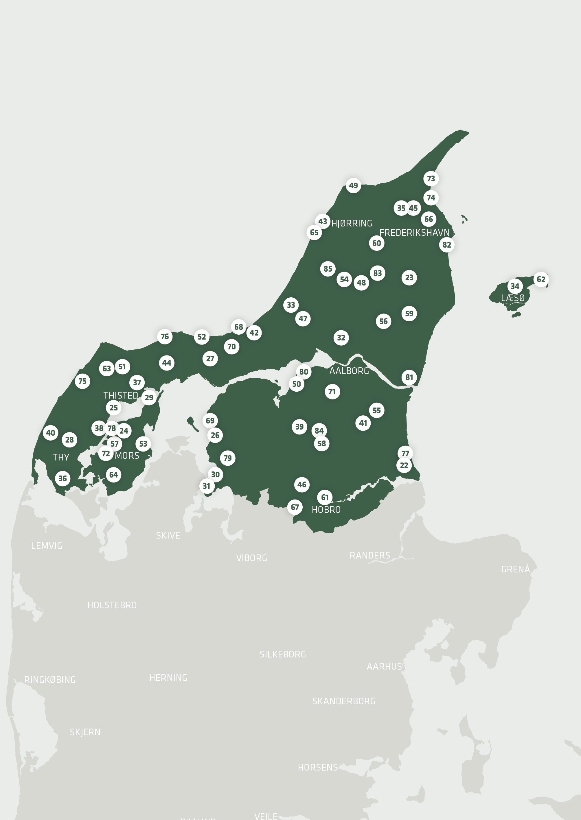 Několik stovek míst v Dánsku – cca 300 míst s kapacitou cca 750 parkovacích míst. Nelze očekávat žádné služby, ale Dánsko je země turisticky rozvinutá a tak mnoho hostitelů nabízí služby, jako je elektřina, voda, toaleta a sprcha, obvykle za menší poplatek. Cca 90 míst je vybaveno i sanitárním vybavením. Mimo průvodce je k dispozici i aplikace pro Android a Apple, lze se přihlásit i k odběru newsletteru, popřípadě se na poslední novinky podívat.