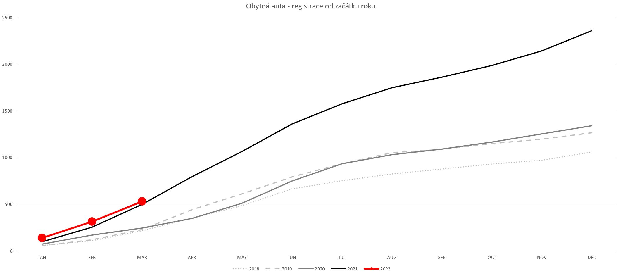 Jako perličku bych uvedl, že 530 nových obytných aut za Q1 2022 je přesně polovina všech obytných aut registrovaných jako nových za celý rok 2018 (1.060 vozidel) .