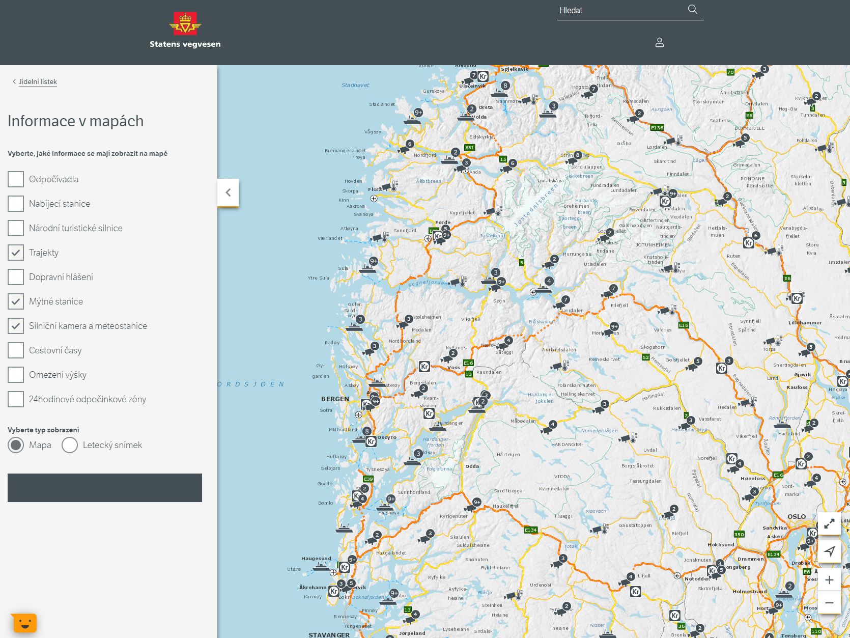 Na této adrese naleznete stránky norského úřadu, které nabízí přehlednou mapu se zobrazením mýtnic i trajektů, případně i nástroje po plánování trasy a výpočet poplatků: