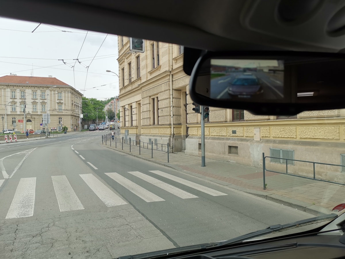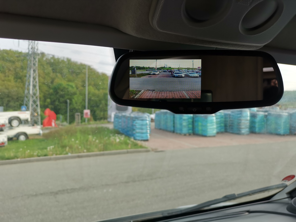 Kvalita obrazu odpovídá kvalitě kamer i monitoru. Pro dané účely je to dostačující a plně to nahrazuje couvací monitor. ostatně při couvání se monitor přepne na couvací kameru, normálně zobrazuje obraz z druhé kamery. Monitor lze přímo na zpětném zrcátku vypnout. Pro ruční přepnutí, či vynucení, obrazu z couvací kamery jsem si doplnil tlačítko. Obraz je dostačující a zrcátko teď slouží jako náhrada klasického zpětného zrcátka: