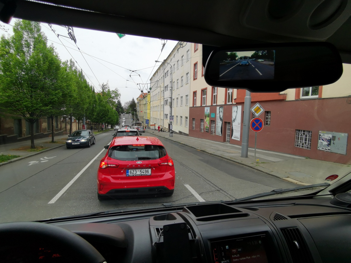 Tuhle situaci dokáže řešit zpětná kamera, mám dokonce vzadu dvojitou, jednu parkovací, druhou na zpětný pohled. Je to od Dometicu. Otázkou tak zůstává, jak obraz zobrazit. Při využití obrazovky autorádia to znamená mít neustále zobrazen signál z kamery, což není příliš pohodlné. Žádné rozdělení obrazovky pro takové použití nefunguje. Navíc není zrovna displej většiny autorádii dobře pozorovatelný z místa řidiče – to je takový nešvar podvozku Fiat Ducato.