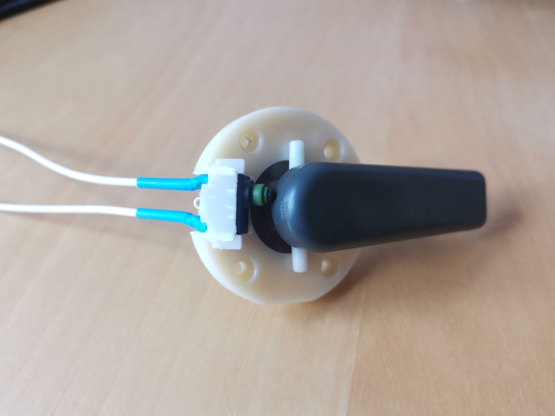 - Použitý mikrospínač je poměrně drahý, má krytí IP 67. Lze použít i jiný, levnější, pro inspiraci může posloužit tento německý článek. Nicméně je dobré počítat se sníženou životností vlivem vlhkosti.