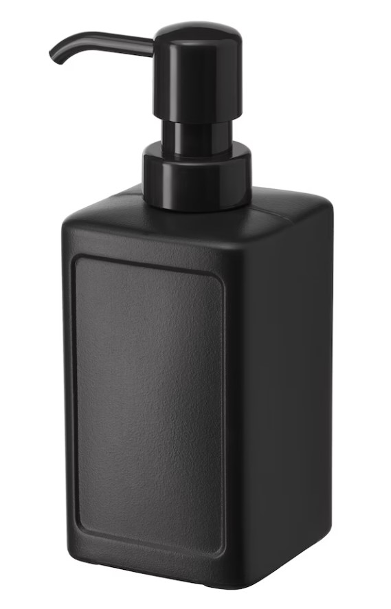 K dřezu pak může přijít vhod dávkovač na mýdlo či saponát taktéž ze série RINNING, dostupný ve dvou barvách, tmavě šedé a zelené, kus za 49 Kč. Tenhle dávkovač lze tak použít jak v kuchyni, tak i v koupelně. IKEA kdysi nabízela sadu tří barevně odlišených dávkovačů, bohužel už není k dispozici.
