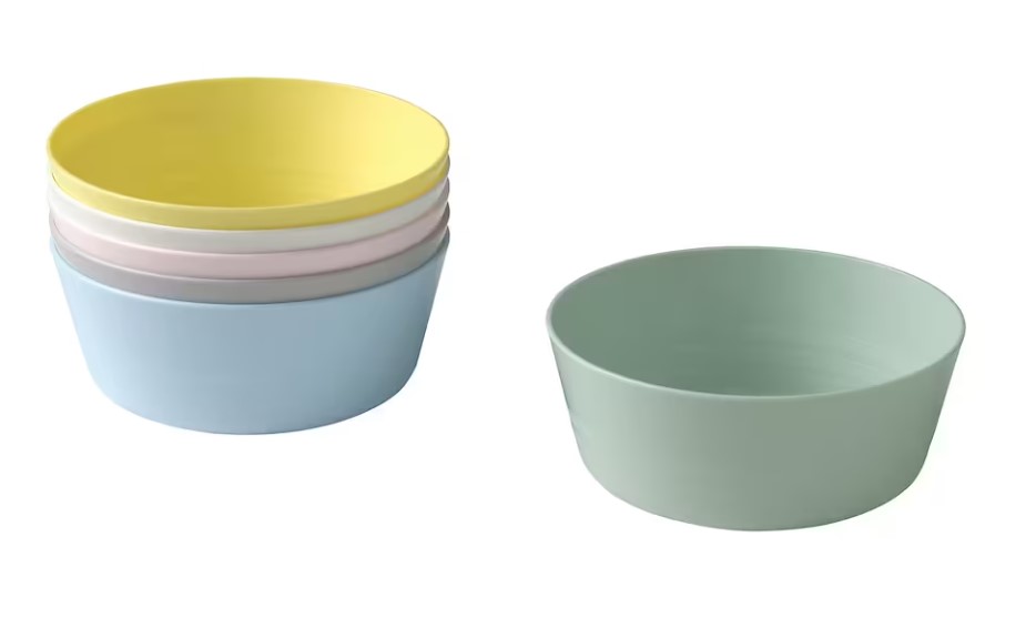 V Ikei dále naleznete v dětském oddělení výběr plastových misek a skleniček, navíc v pěkných barvách, v baleních po 6 kusech, série KALAS. V roce 2022 došlo k mírným změnám v barvách a materiálu, sady 6 ks stojí vždy po 49 Kč – aktuálně je nabízeno toto: