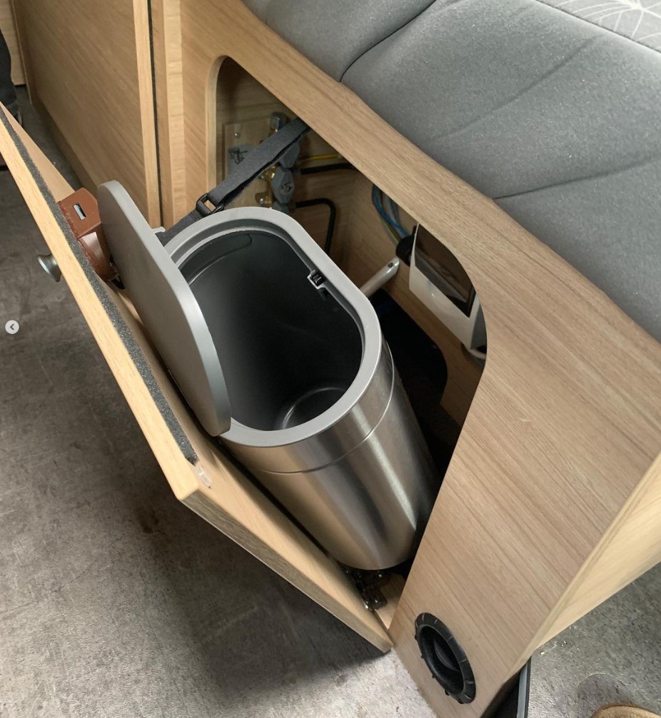 Do výklopných dvířek pod sedadly lze naistalovat 4l odpadkový koš BROGRUND, cena v roce 2022 449 Kč