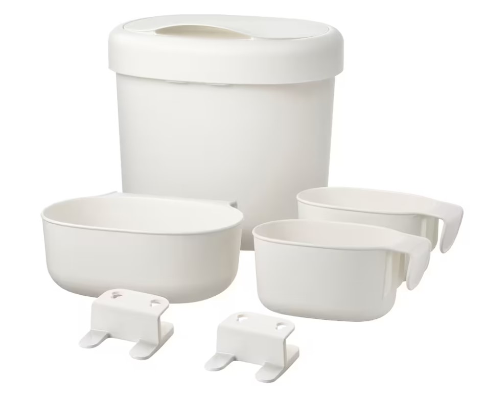 Co se týče odpadkových košů, Ikea nabízí dále 10l koš HÅLLBAR – 10l koš ( 2020: 149 Kč, 2022: 169 Kč) nebo lze využíti větší z košů ze sady k přebalovacímu stolu ÖNSKLIG – koše k přebalovacímu stolu (2020: 249 Kč, 2022: 299 Kč)