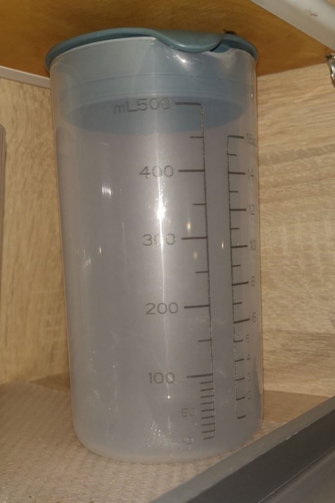 Užitečná je i odměrka STANDARDMÅTT, Ikea ji sice prodává jako šejkr, ale jako odměrka slouží skvěle. Za 39 Kč (2022) skladná a univerzální.