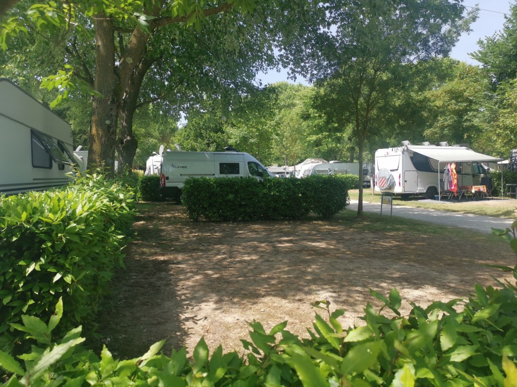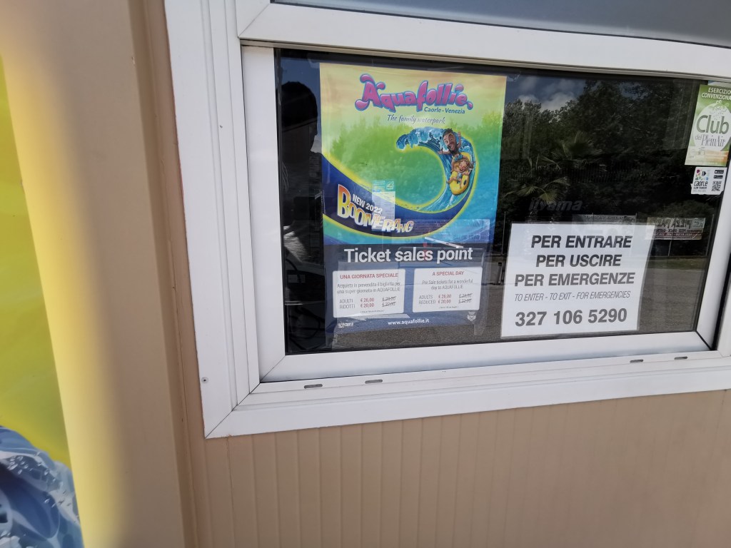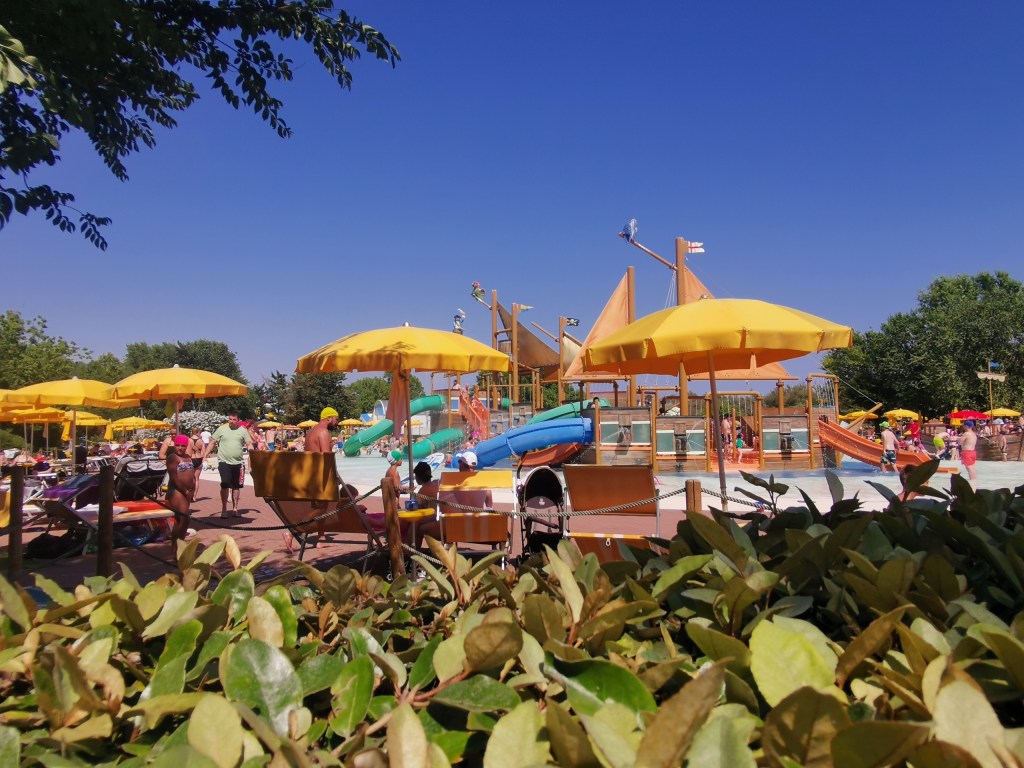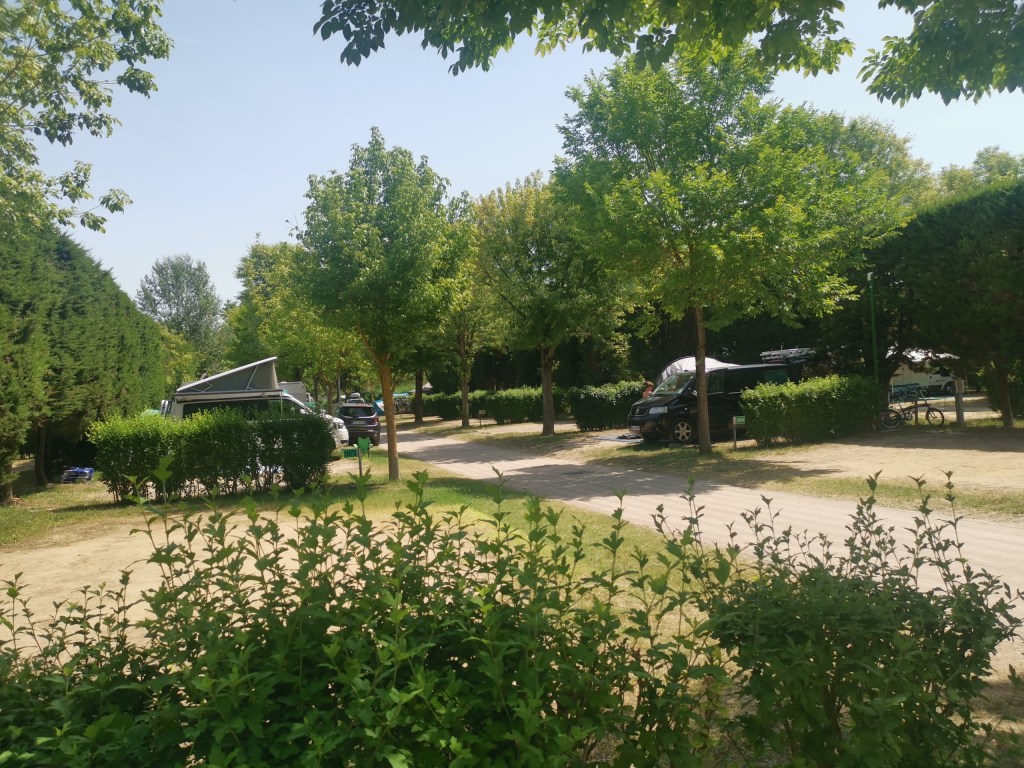 Přímo v Caorle je za vodním parkem umístněné stání pro obytná auta. Jedná se o holou betonovou plochu s minimem stínu, plusem je přilehlý vodní park Aquafolie a z druhé strany pak normální přírodní park se zelení. V docházkové vzdálenosti je i obchod Famila.
