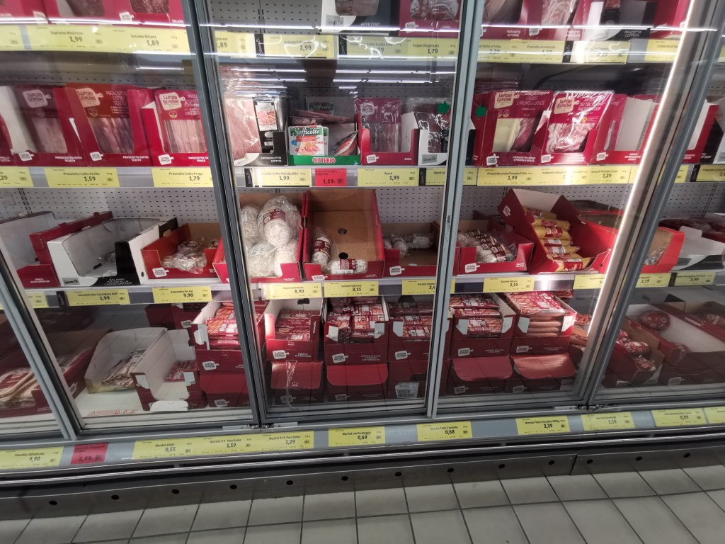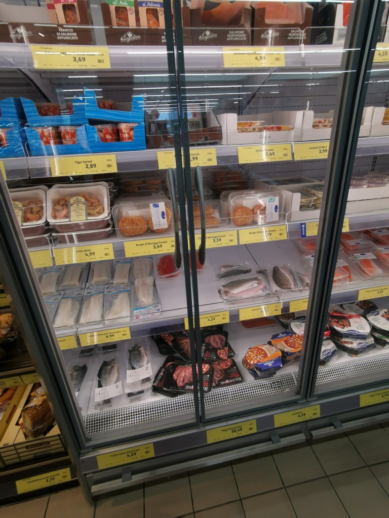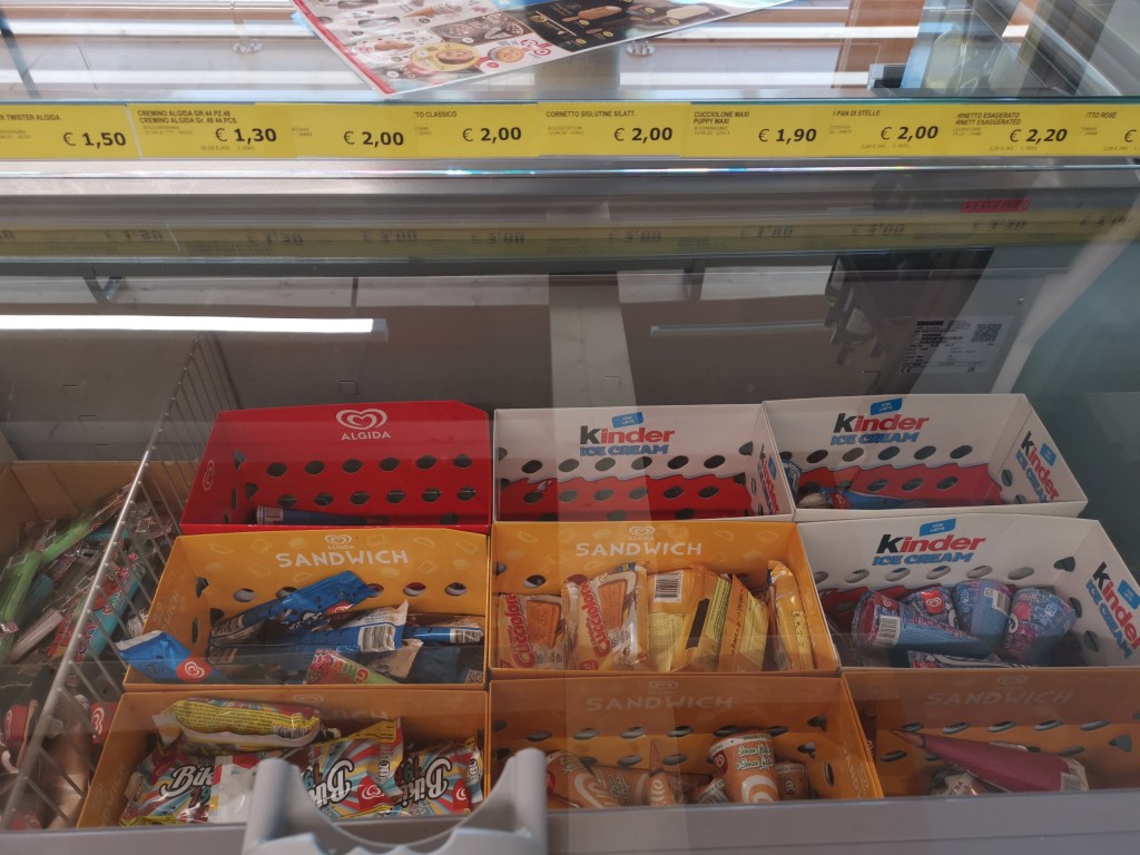 Ceny mimo kemp jsou zhruba tyto – jedná se o záběry z iN’s Mercato na začátku Caorle, webové stránky https://www.insmercato.it/ :