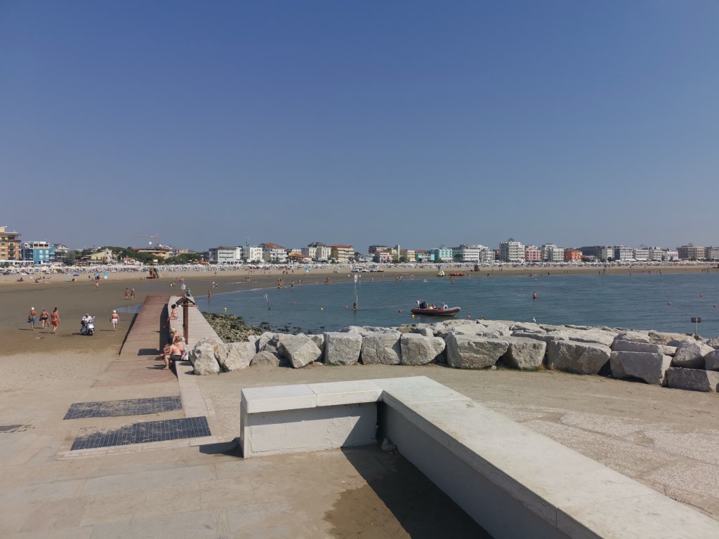 Při příjezdu ke vstupu do celého komplexu ve mne trochu zatrnulo, na recepci čekalo docela dost lidí. Je nutné si vzít u automatu s dotykovou obrazovkou lístek a čekat. Příjemným překvapením byla i možnost zvolit si češtinu, tedy pro ten automat – vlastní jednaní na recepci se odbylo v angličtině, další volbou podle mého odhadu je samozřejmě domácí italština a němčina. Dobu čekání si lze ukrátit na dětském minihřišti, jsou tady automaty na nápoje a poměrně dost míst na sednutí. WC také. Pracovníci byli poměrně milí a příjemní a vlastní odbavení jakmile na nás přišla řada, rychlé. Z občanek si opsali potřebné údaje a vrátili je, do systému zanesli registrační značku našeho vozu, na ruku nám dali náramky s čipem (otevírají se pomocí něj dveře na pláž) a poučili nás, kde máme předposlední den zaplatit za pobyt.