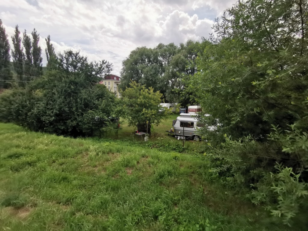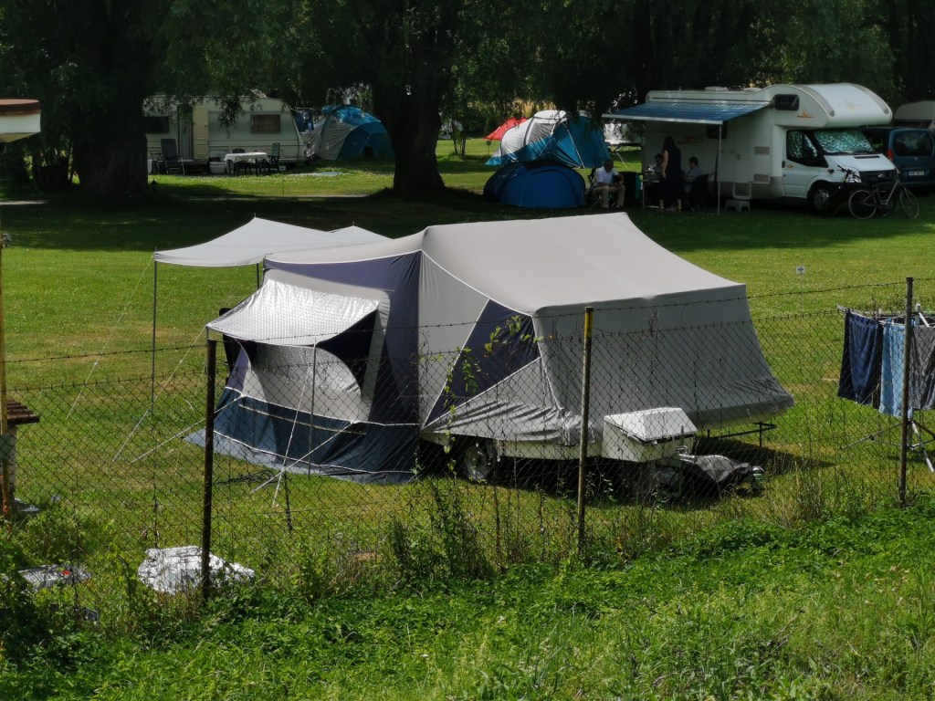 Velkou část ubytovaných v tomhle kempu tvořili cizinci, soudě dle poznávacích značek cizinci, ostatně bylo to znát i na vozovém parku v kempu – skládací stanový přívěs či ikonická Eriba.