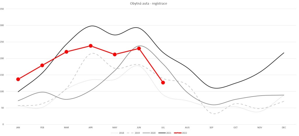 To jsou zarážející čísla, vždyť doposud to bylo o zhruba „jen“ o 20%. Navíc počty registrací nových vozidel klesají již pátým měsícem v řadě a nyní počet vozidel registrovaných za červenec odpovídá spíše registracím ve stejném měsíci roku 2019.