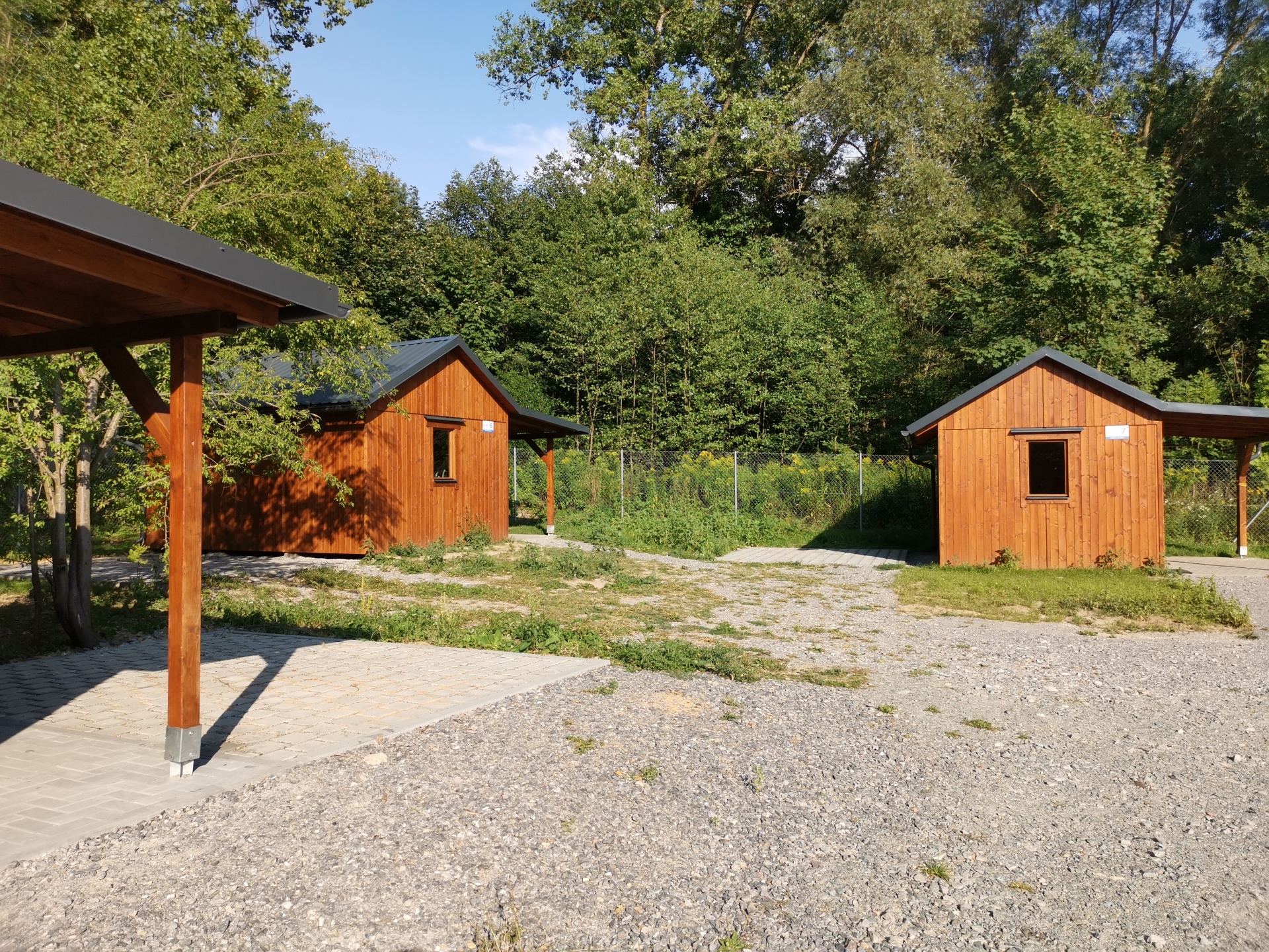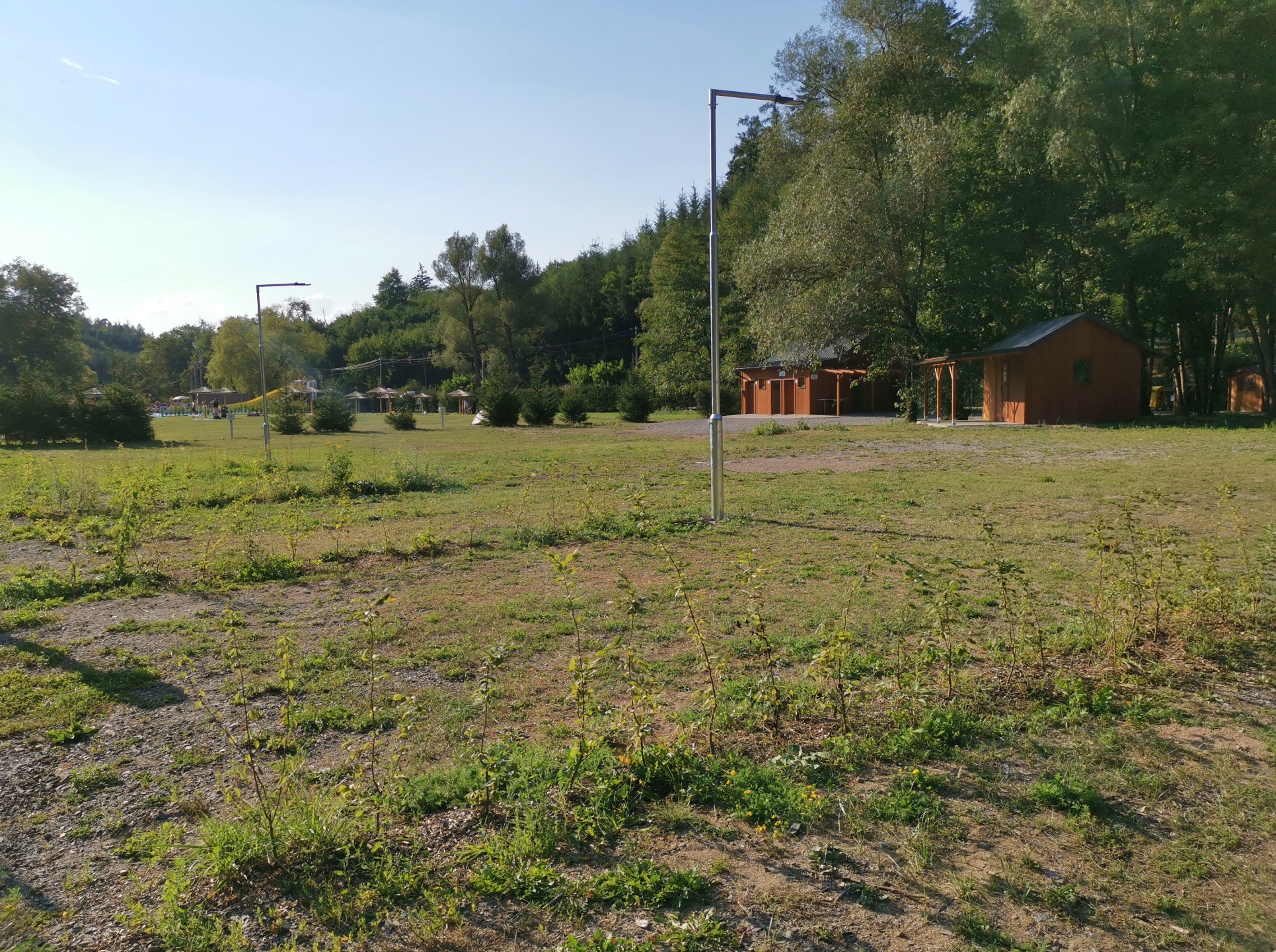 - Obytná vozidla – směrem ke koupališti jsou pak vytvořeny parcely pro stání s obytným autem nebo přívěsem, s možností připojit se na jeden z několika elektro sloupků. Jednotlivá místa jsou od sebe oddělena živým plotem, respektive ten byl nedávno vysazen a tak k úplnému oddělení dojde časem.