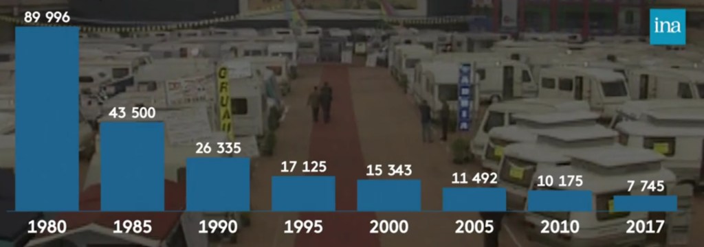 Zatímco šedesátá a sedmdesátá léta minulého století byla ve Francii ve znamení obliby obytných přívěsů, tak reportáž z roku 1977 a další, z roku 1980, jako by předznamenaly konec této ery. Zatímco do roku 1980 počet registrací nových přívěsů jen a jen rostl, rok 1980 byl posledním rokem velkých prodejů. Poté přichází zlom. A obytná auta od té doby prakticky jen rostou a od roku 2007 jsou pak jasně dominujícím typem rekreačního vozidla.