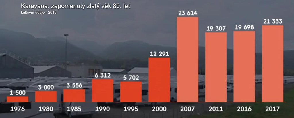 Ústup obytných přívěsů je patrný z těchto grafů: