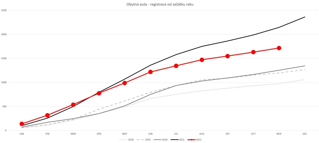 Celkově se tak u nás za prvních jedenáct měsíců již registrovalo jako nové 1715 obytných aut a 697 obytných přívěsů. Je tak zřejmé, že rok 2022 zaujme co do počtu registrovaných vozidel v historii druhou příčku, hned po roce 2021 – v něm se registrovalo bezprecedentních 2361 aut a 766 přívěsů