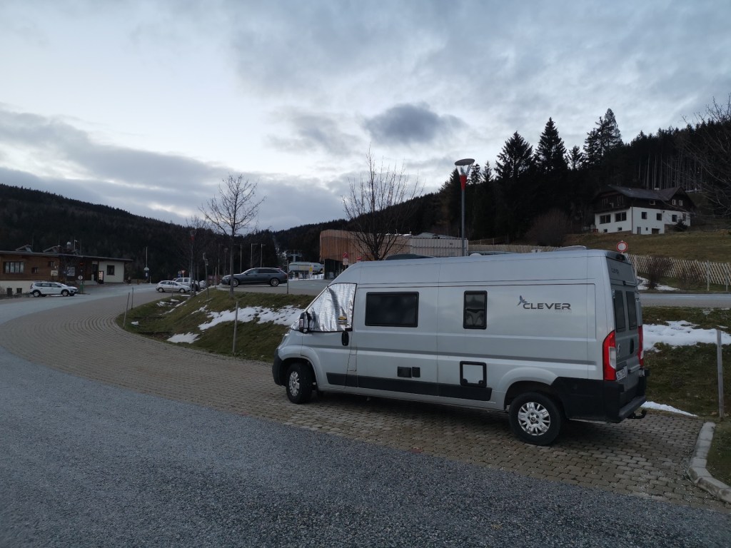U spodní stanice lanovky je velké parkoviště s celkem třemi terasami a oddělenou částí pro stání autobusů. Další parkoviště jsou pak v blízkém okolí. Vše bezplatné a relativně v rovině. K tomu s výhledem, stojí se skutečně na kopci a poměrně vysoko. Není zde ani žádný zákaz obytek či nočního stání, nikdo ani nic nenamítal proti nočnímu stání napříč hned přes několik míst . Nicméně na den jsem přeparkoval na příčné stání. Auto se vejde, zadní přesah je pak ale dost ve vzduchu a nějaká nakládání či vykládání lyží je obtížné. Ale zkušenost mám jen z prosince, kdy je zájem lyžařů přeci jen menší než ve vrcholné sezóně. To mohou být všechna místa obsazena.