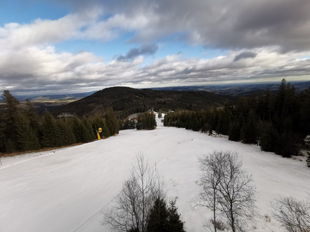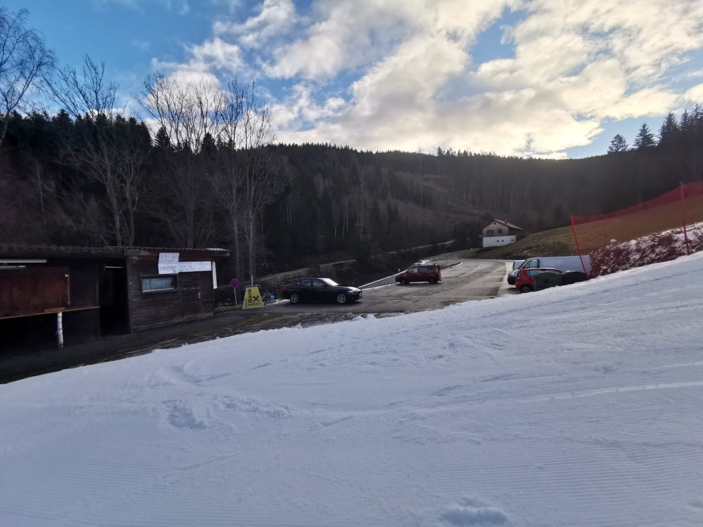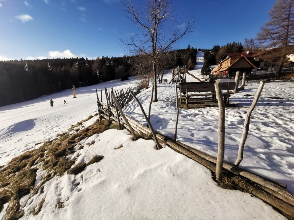 Popis začnu asi trochu netradičně odzadu. Pro pokročilé lyžaře tenhle areál rozhodně není. Nějaké vyžití najdou v zadní části obsluhované čtyřsedačkou Panoramabahn, kde je i jediná černá sjezdovka resortu č. 8. Černou barvu si snad zaslouží jen pro poměrně krátký úsek s trochu vyšším spádem, osobně bych se ji nebál přeznačit také na červenou, ale ta černá zde snad v kontextu ostatních sjezdovek dává smysl. V téhle části lze dolů sjet i po červené trati číslo 7 a nebo modrou sjezdovkou č.6. Obě se ovšem v druhé třetině přeznačí a to u restaurace Alpengasthof Fernblick. Poslední úsek směrem k údolní stanici Panoramabahn je tak značen jako červená sjezdovka číslo 9 a nebo jako modrá č.10. Ovšem díky nedostatku sněhu nebyla tato v době naší návštěvy v provozu. Ne že by to vadilo, ani červená č.9 není zrovna obtížná. Jen ten nedostatek sněhu…..po ránu sice byl povrch pevný, místy až mírně zledovatělý, ale tahle pevná slupka rychle povolila a po poledni to byla již jízda v jakési sněhové vatě.