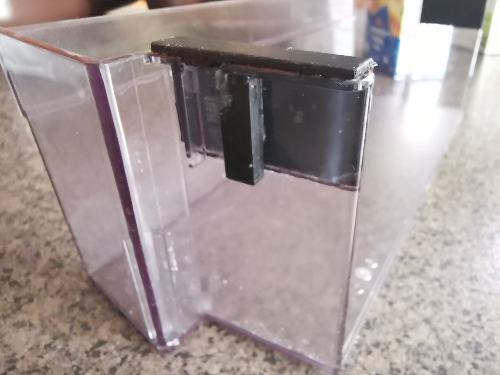 V důsledku toho polička již pořádně nedržela a při zatížení se „propadla“. Novou poličku lze samozřejmě docela snadno koupit, jen cena za tento kus plastu je 599 Kč plus poštovné, takže cena hravě překročí sedm stovek. Což se mi kvůli kousku prasklého plastu moc platit nechtělo, navíc ty poličky mne o své odolnosti zatím moc nepřesvědčily.