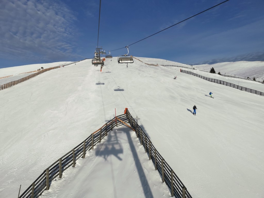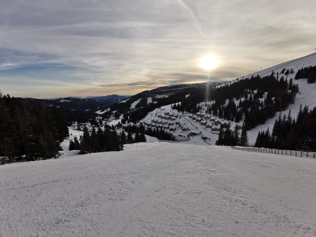 Malé středisko Lachtal je pokryto jen dvěma šesti sedačkami a pár vleky, ale přesto nabízí zábavné lyžování na zhruba 40km sjezdovek. Známé je díky možnosti freeridu, ale to jsme bohužel vzhledem k zásobám sněhu nemohli vyzkoušet. Tedy já bych to ani tak nezkoušel, to je spíše aktivita pro mladší část naší rodiny. Středisko leží mimo hlavní trasy, byť od nich není nijak dramaticky daleko, a poslední část cesty poměrně výrazně stoupá, až k začátku ski areálu ve výšce 1600 metrů nad mořem.