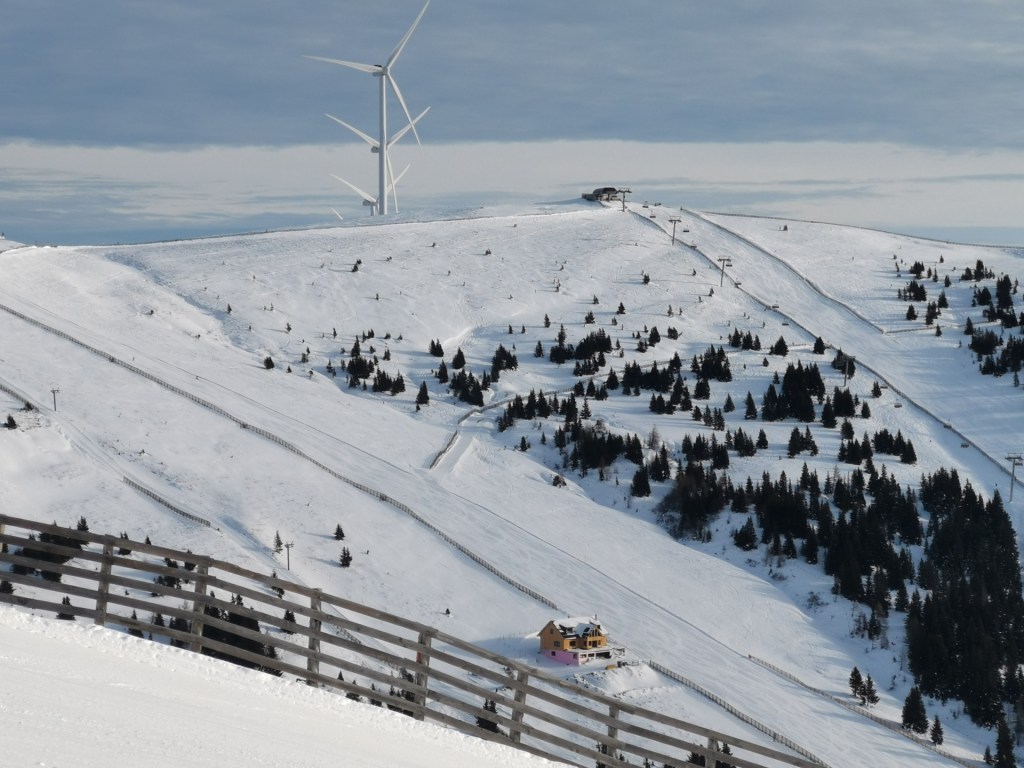 Překvapivě k malé velikosti střediska dobře. Z konečné stanice každé ze dvou šesti sedaček se lze dolů spustit hned po několika sjezdovkách a cestu dolů si tak vždy zkombinovat nějak jinak. Takže nuda zde nehrozí. Dopoledne jsem si užívali na svazích Hoher Zinken a poté se přesunuly na jakýsi bok areálu obsluhovaný druhou šesti sedačkou Schonberg. Z konečné stanice lze obdivovat les větrných elektráren. Ze Zinkenu je vidět jen několik z nich, ale jakmile vyjedete nahoru druhého hřbetu, uvidíte, že jich je tam hned několik. a obrovských. A pod nimi ještě celé pole slunečníků, tedy fotovoltaických panelů Hned máte lepší pocit, že lyžování tady musí být velmi ekologické, obzvláště když se vrtule točí. Ovšem během našeho lyžování se vrtule i na více jak hodinu zcela zastavily, ale lanovky ale naštěstí ne a i nadále pokračovaly v provozu.