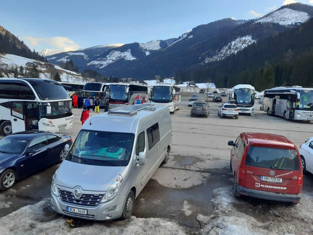 Další dvě noci jsme tedy byli ve Flachau u sjezdovky. Dle P4N. Spaní na parkovišti pro dlouhodobé stání je tolerováno. Obytek tam bylo vždy cca kolem deseti.