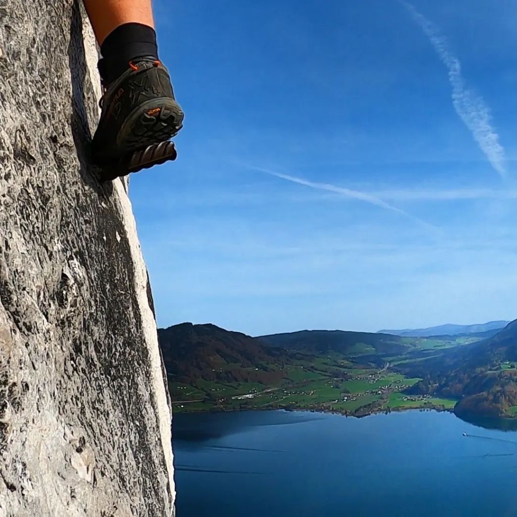 Tohle je fantastická ferrata s neustálým výhledem na Dachstein i vody jezera. K jeho hladině se také při lezení přiblížíte, část trasy vede přímo nad ní. Dále vás zde čeká v i lanový most. Ferrata je okružní, takže skončíte prakticky tam, kde jste začali. V létě je ale poměrně frekventovaná, takže i pro ní v sezóně platí: vyražte brzo ráno!