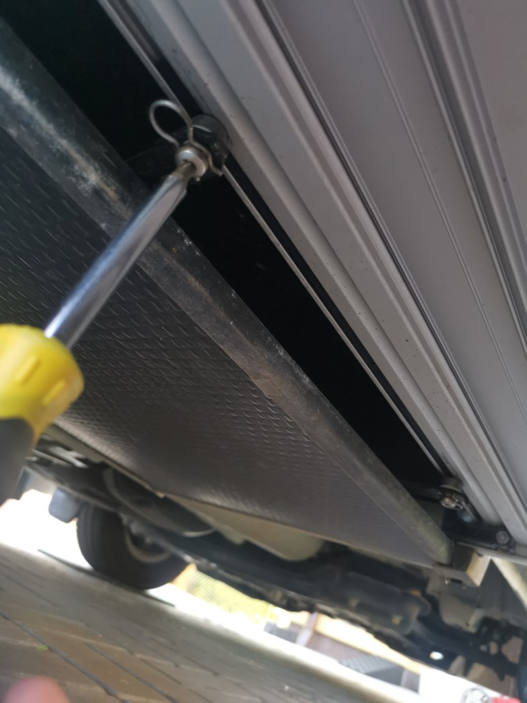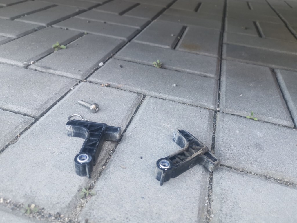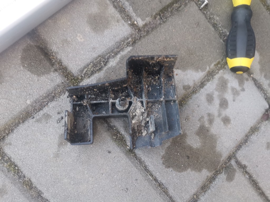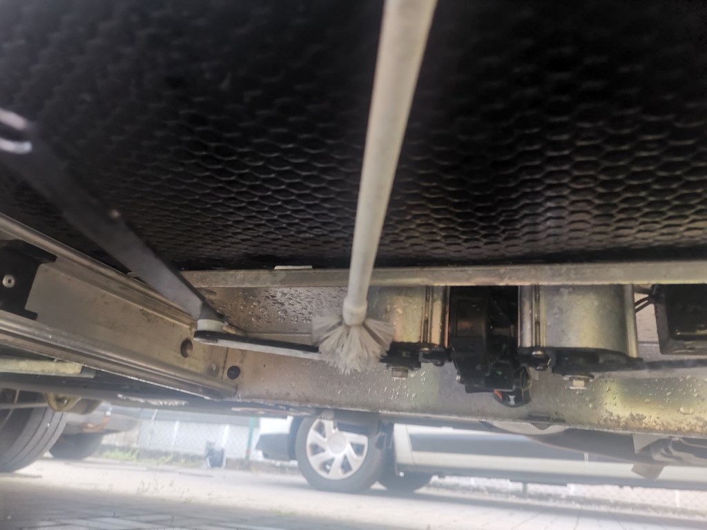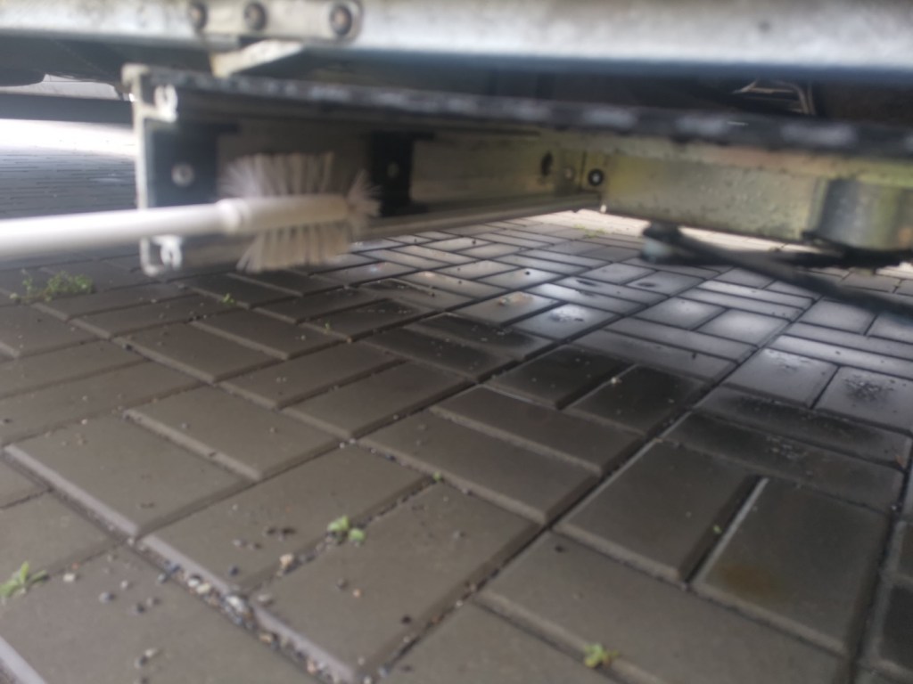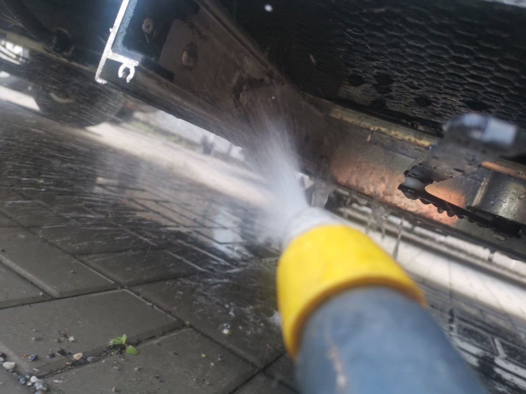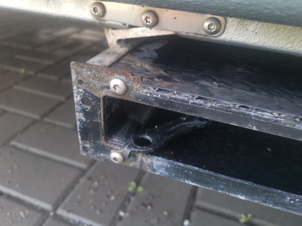 Vyjmuté díly je dobré důkladně očistit, zejména plastové bočnice jsou uvnitř plné drobného silničního sajrajtíku, vše nechat uschnout, plastové díly případně ošetřit vhodným přípravkem. Nosníky pohyblivé části schůdku opatřit WD40.