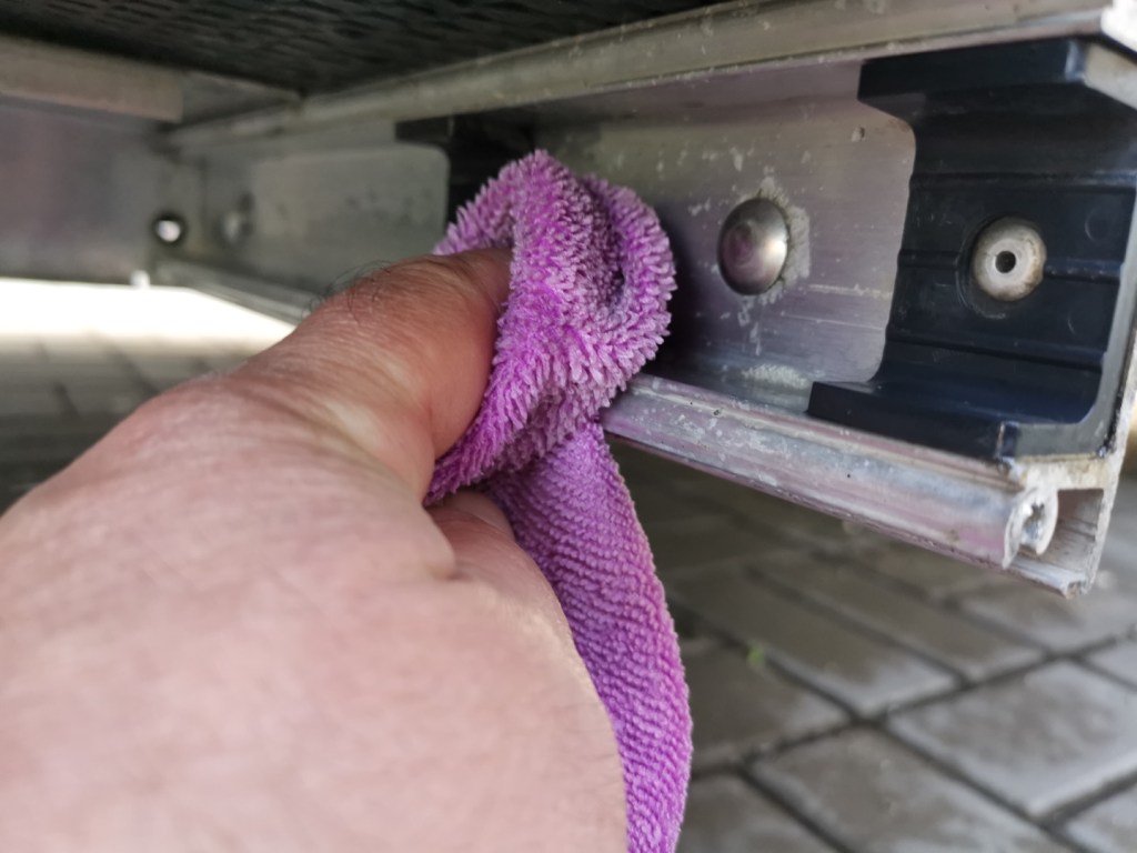 Vysouvací schůdek Thule na mé vestavbě dostává zejména v zimě dost zabrat. Posolené či posypané zimní cesty jsou zdrojem kamínků a dalšího drobného sajrajtíčku. A i když se snažím auto po každé jízdě opláchnout, tak ani tak se nevyhnu tomu, aby na začátku jara nebylo nutné schůdek důkladně očistit a zajistit tak i nadále jeho hladký chod.