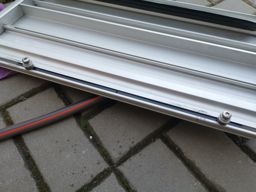 Vnitřek, tedy bočnice, kde se pohybuje pohyblivá část schůdku, je nutno očistoit – bývají zde kamínky, drobné nečistoty a podobně. Při použití vody nutno dát pozor a nestříkat přímo na motorky obstarávající pohyb schůdku. Možné využít kartáček a ošetřit i ramena pohonu. Osušit a nanést WD 40